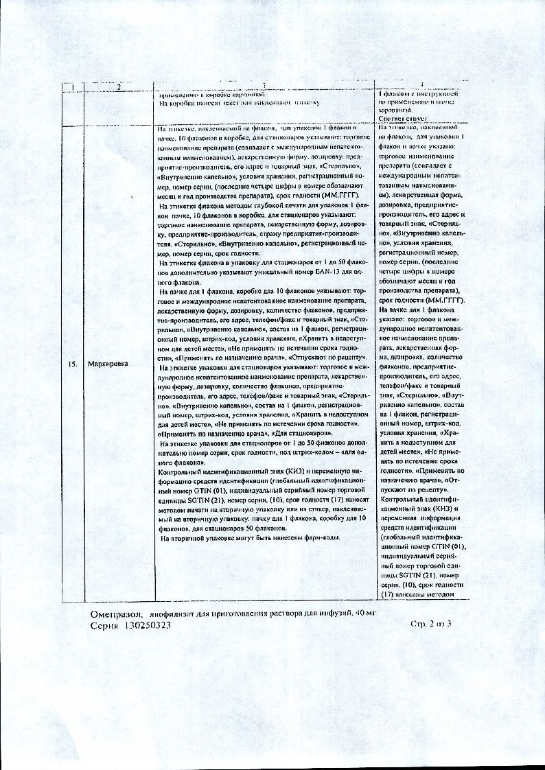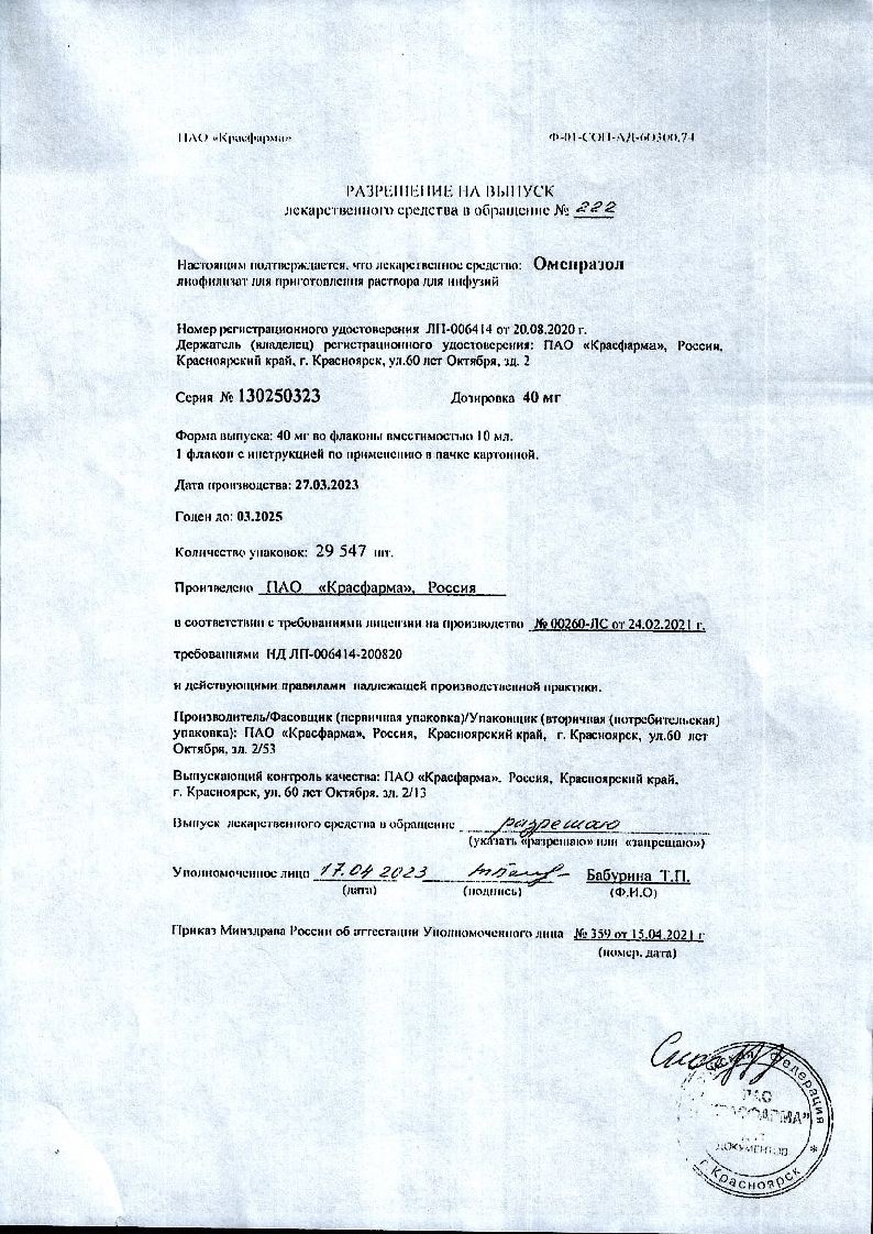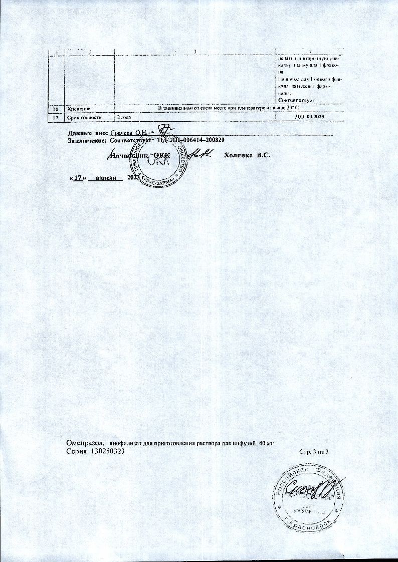 Омепразол 40 мг лиофилизат для приготовления раствора для инфузий флакон