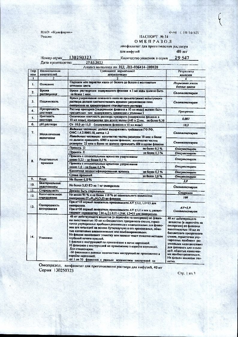 Омепразол 40 мг 1 шт лиофилизат для приготовления раствора для инфузий флакон