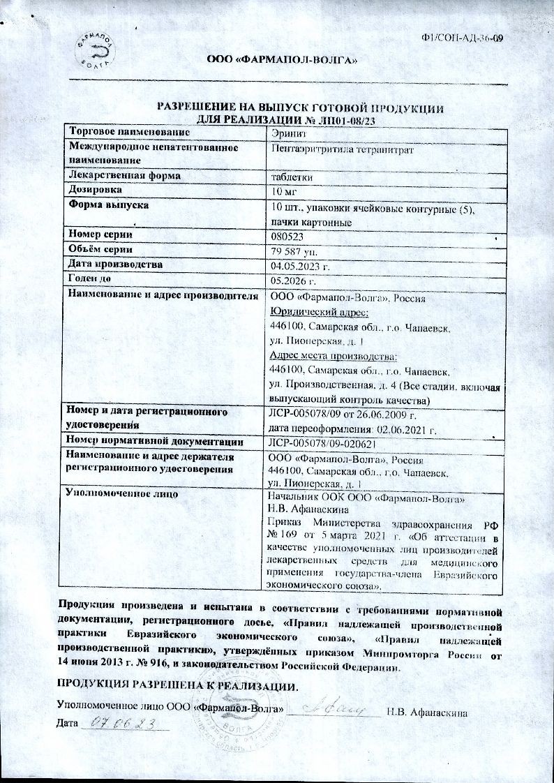 Купить: Эринит 10 мг 50 шт таблетки