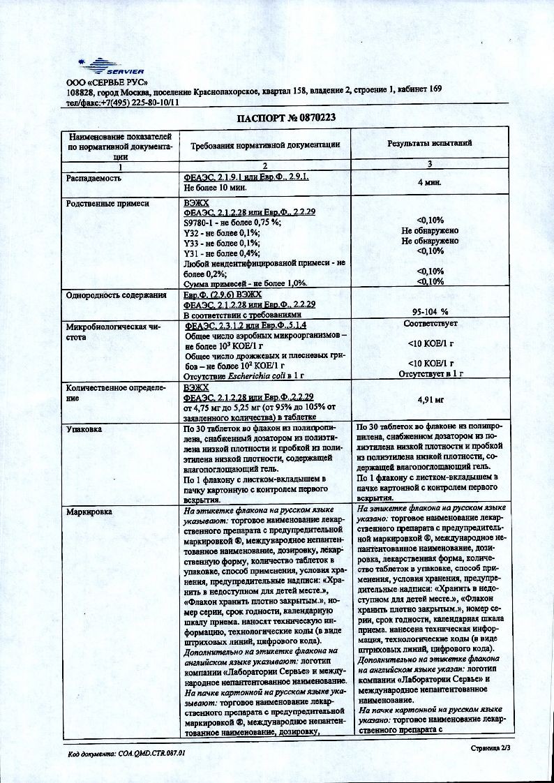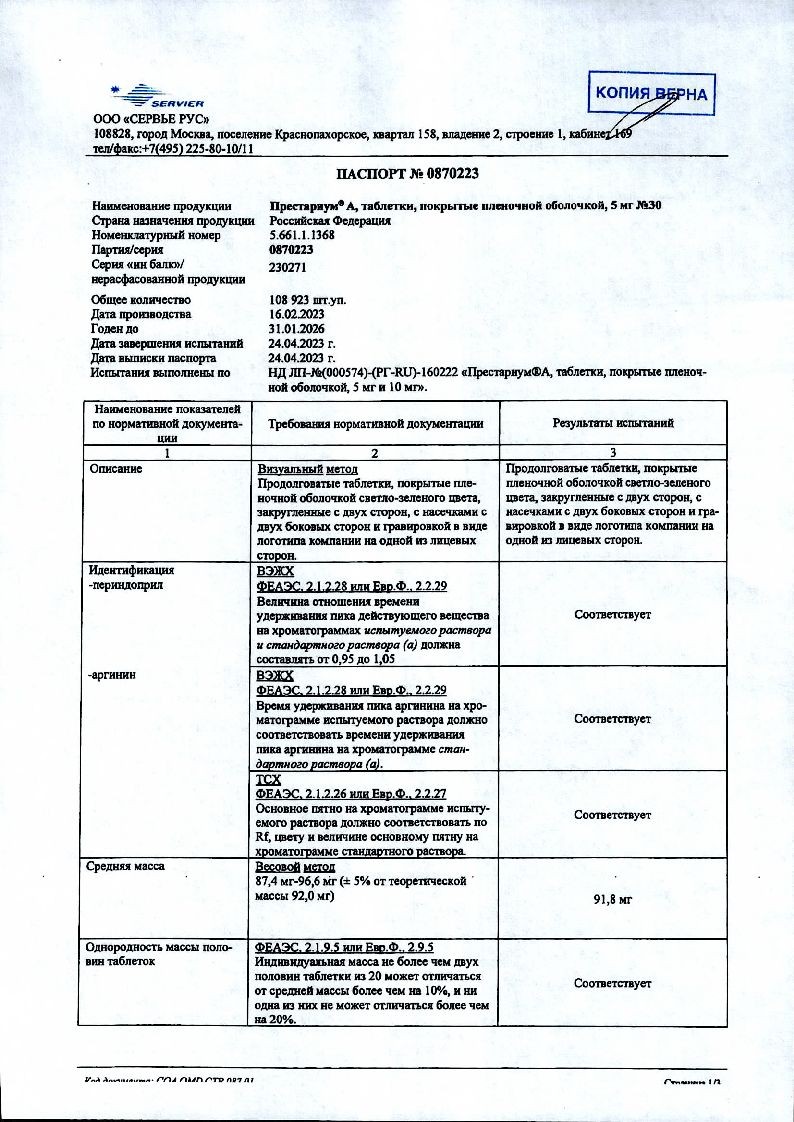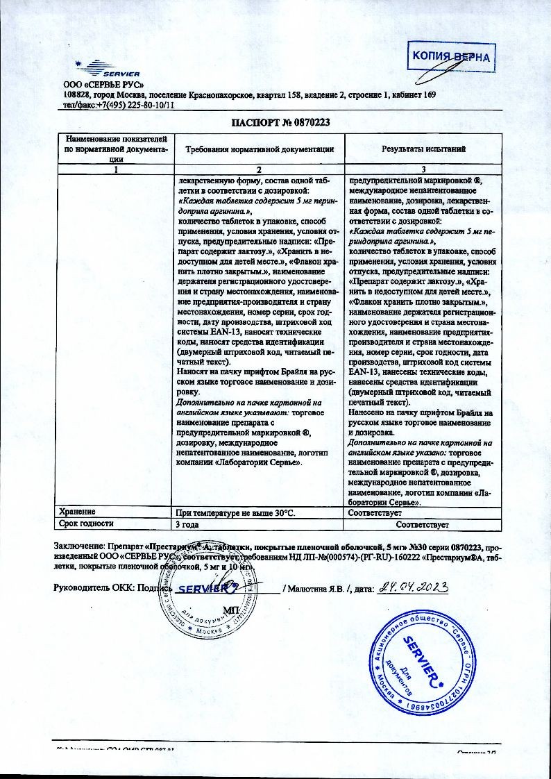 Престариум А 5 мг 30 шт таблетки покрытые пленочной оболочкой