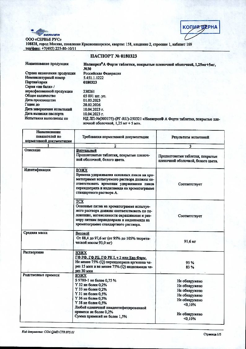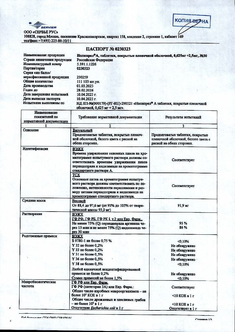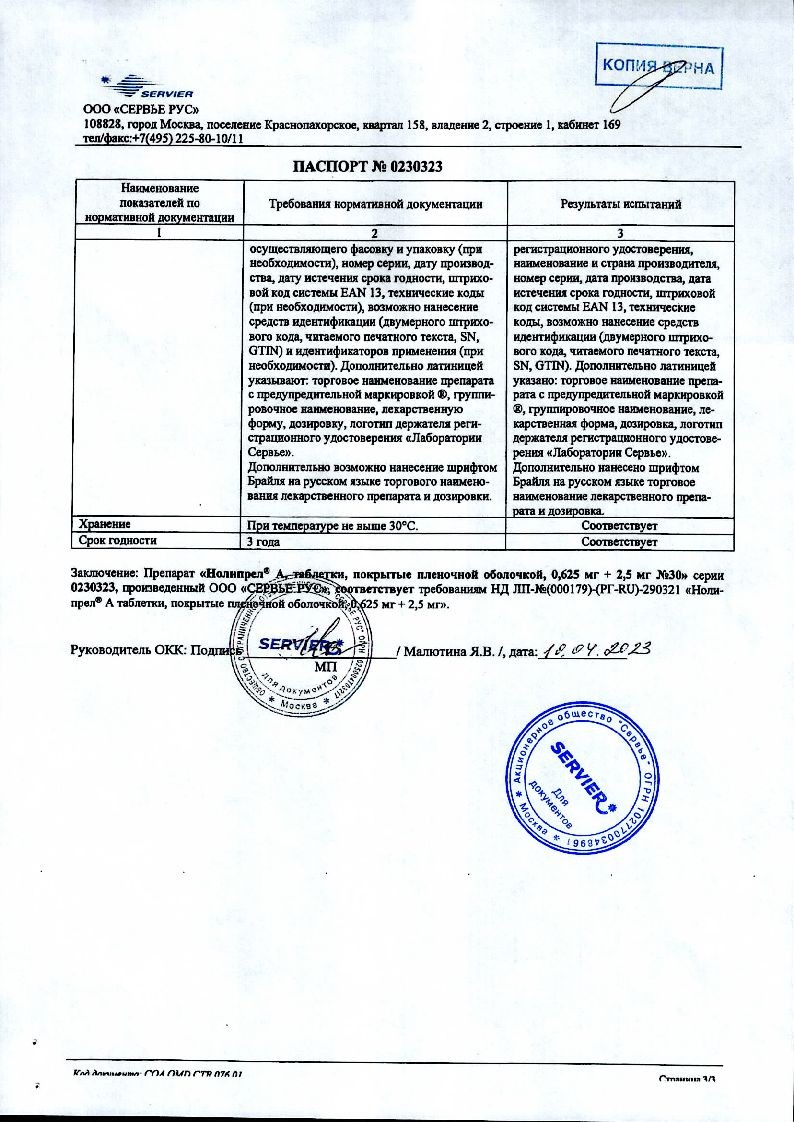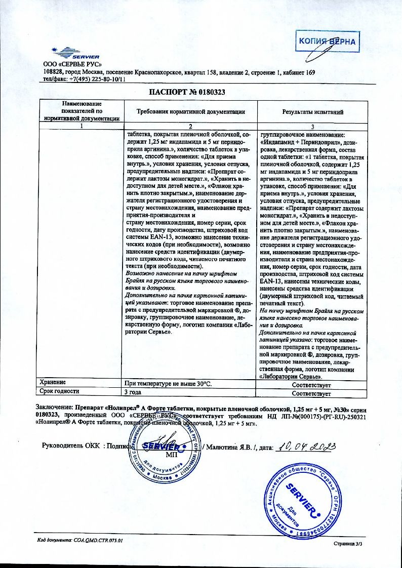Нолипрел А Би-форте 2,5 мг + 10 мг 30 шт таблетки покрытые пленочной оболочкой