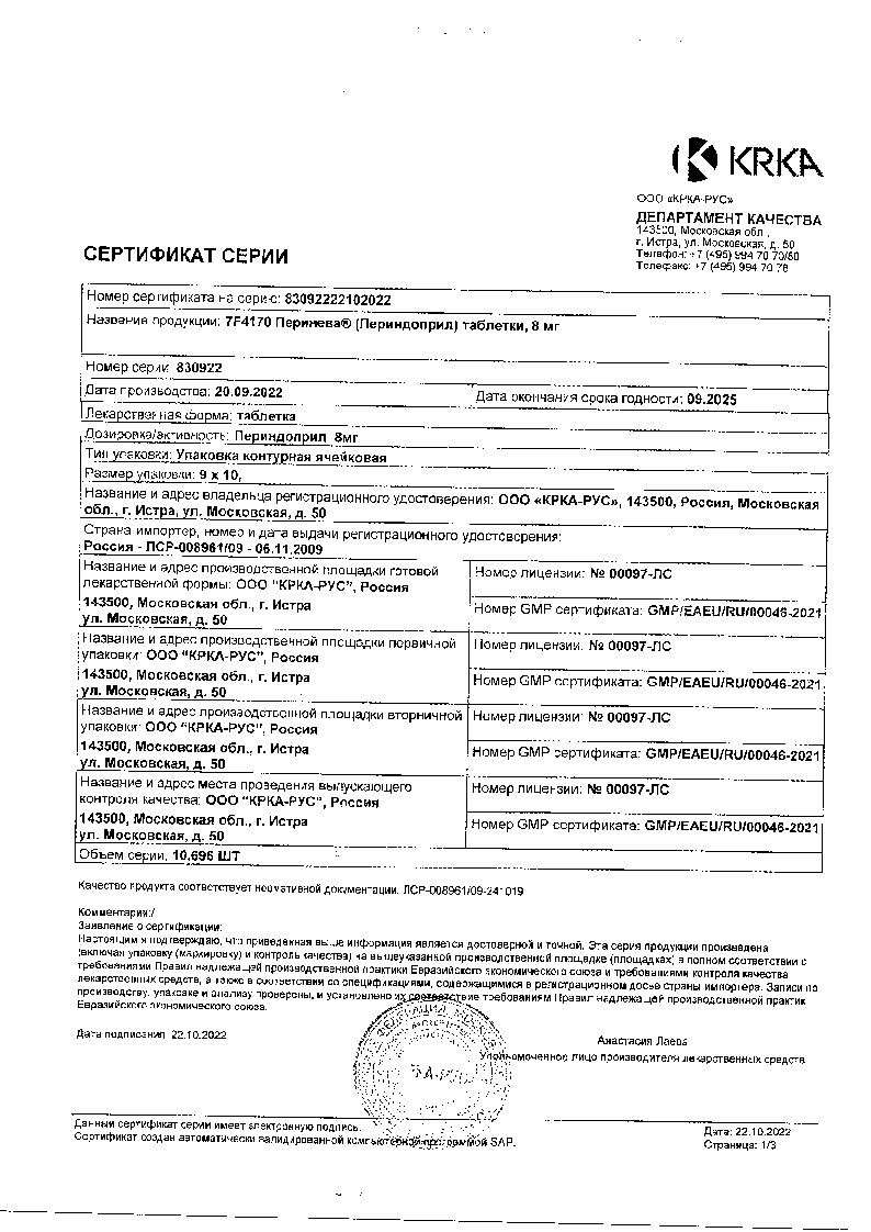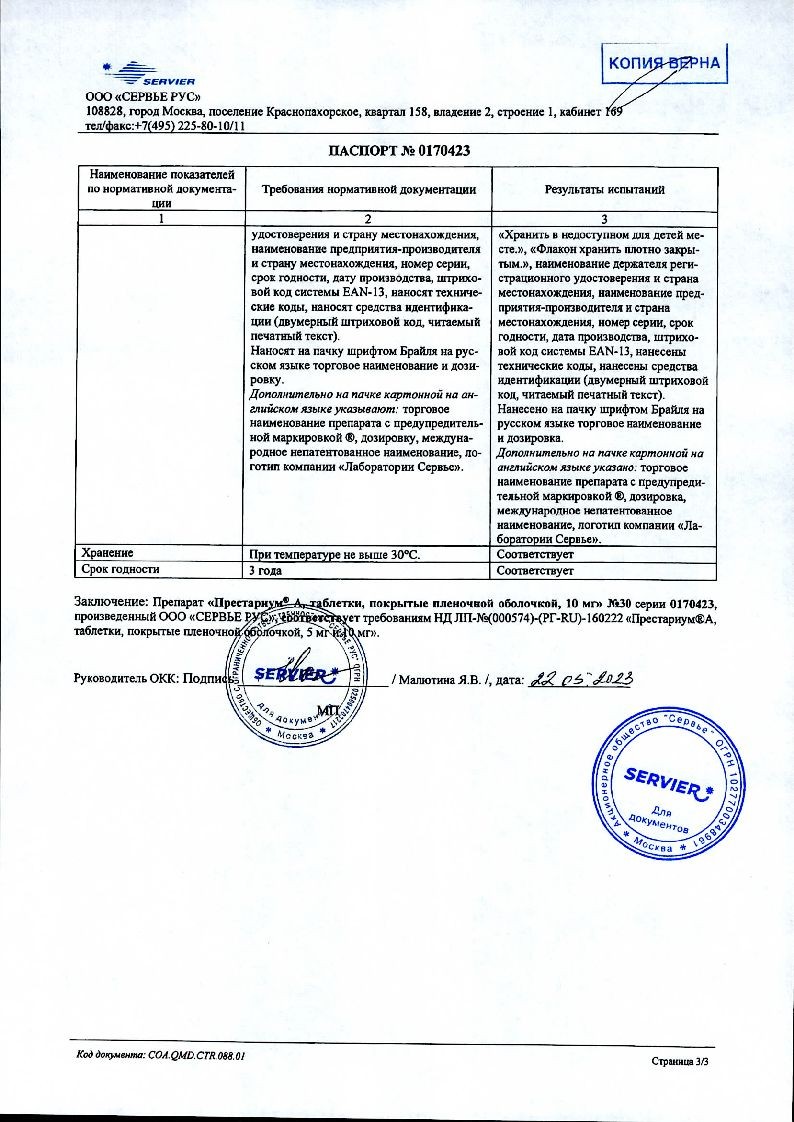 Престариум А 10 мг 30 шт таблетки покрытые пленочной оболочкой