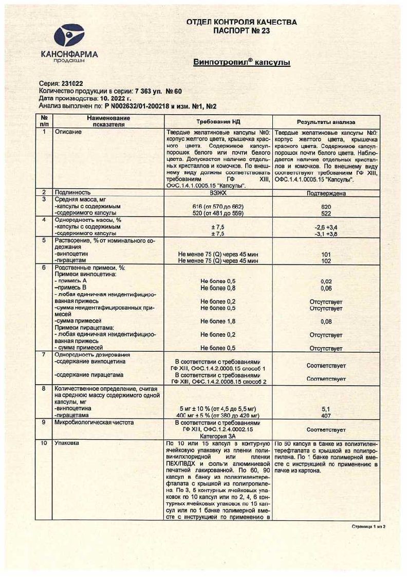 Винпотропил 10 мг + 800 мг 60 шт таблетки покрытые оболочкой