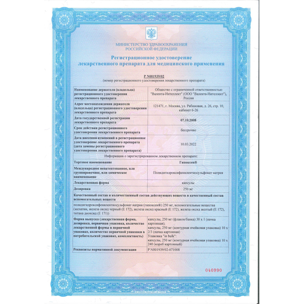 Купить: Гипоксен Валента 250 мг 30 шт капсулы