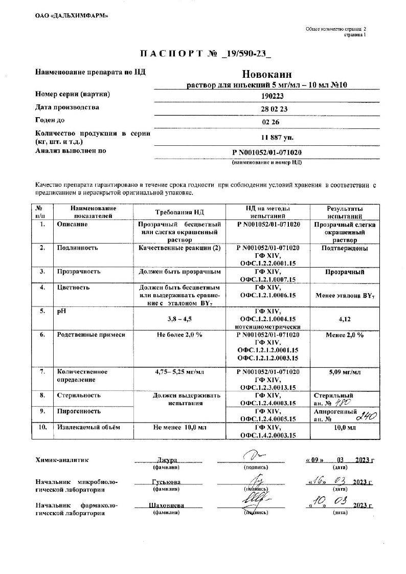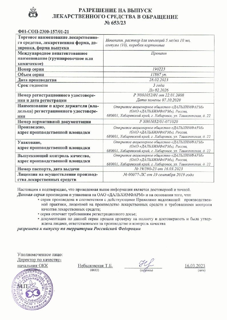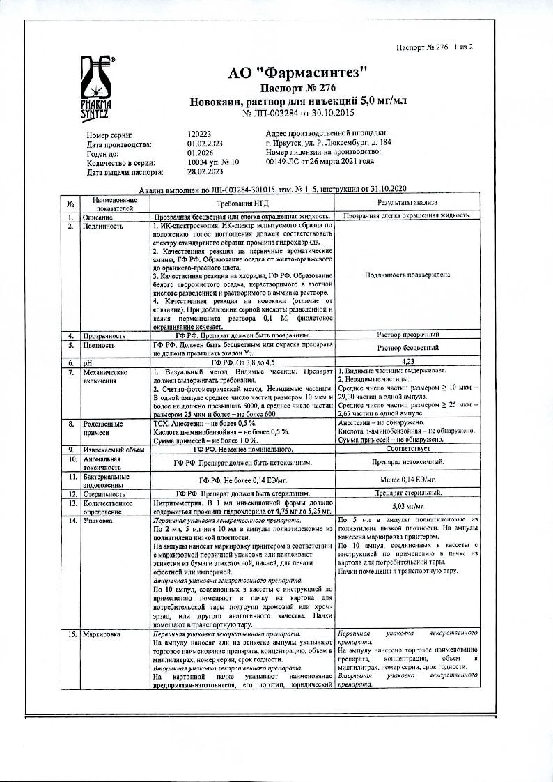 Новокаин 0,5 % 10 мл 10 шт раствор для инъекций