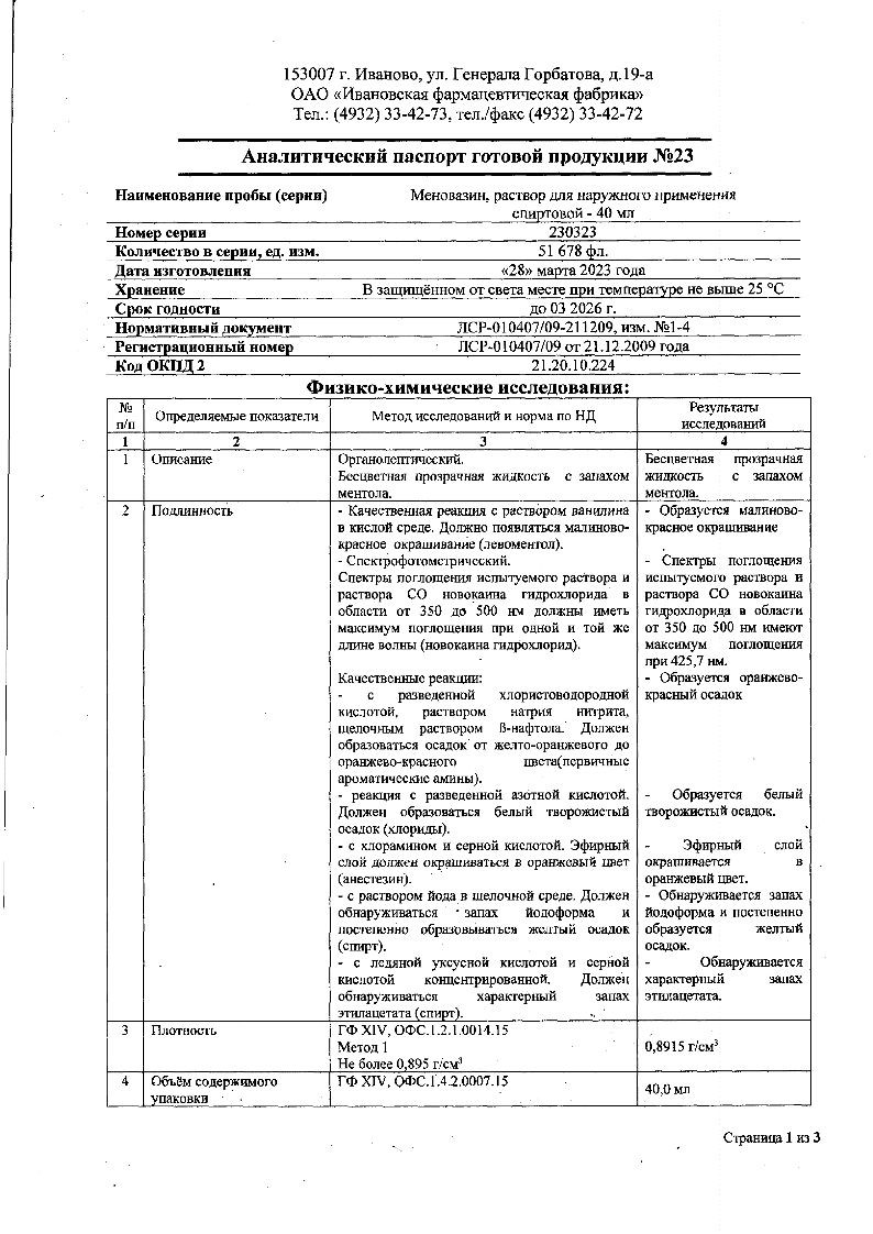 Меновазин 40 мл раствор для наружного применения спиртовой