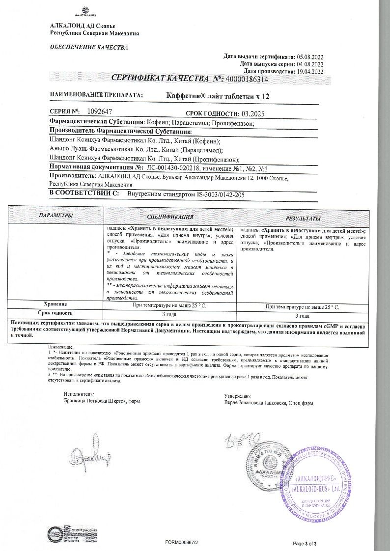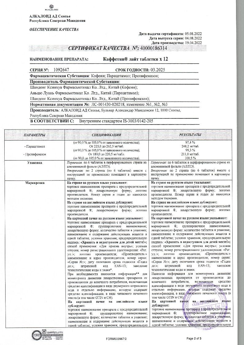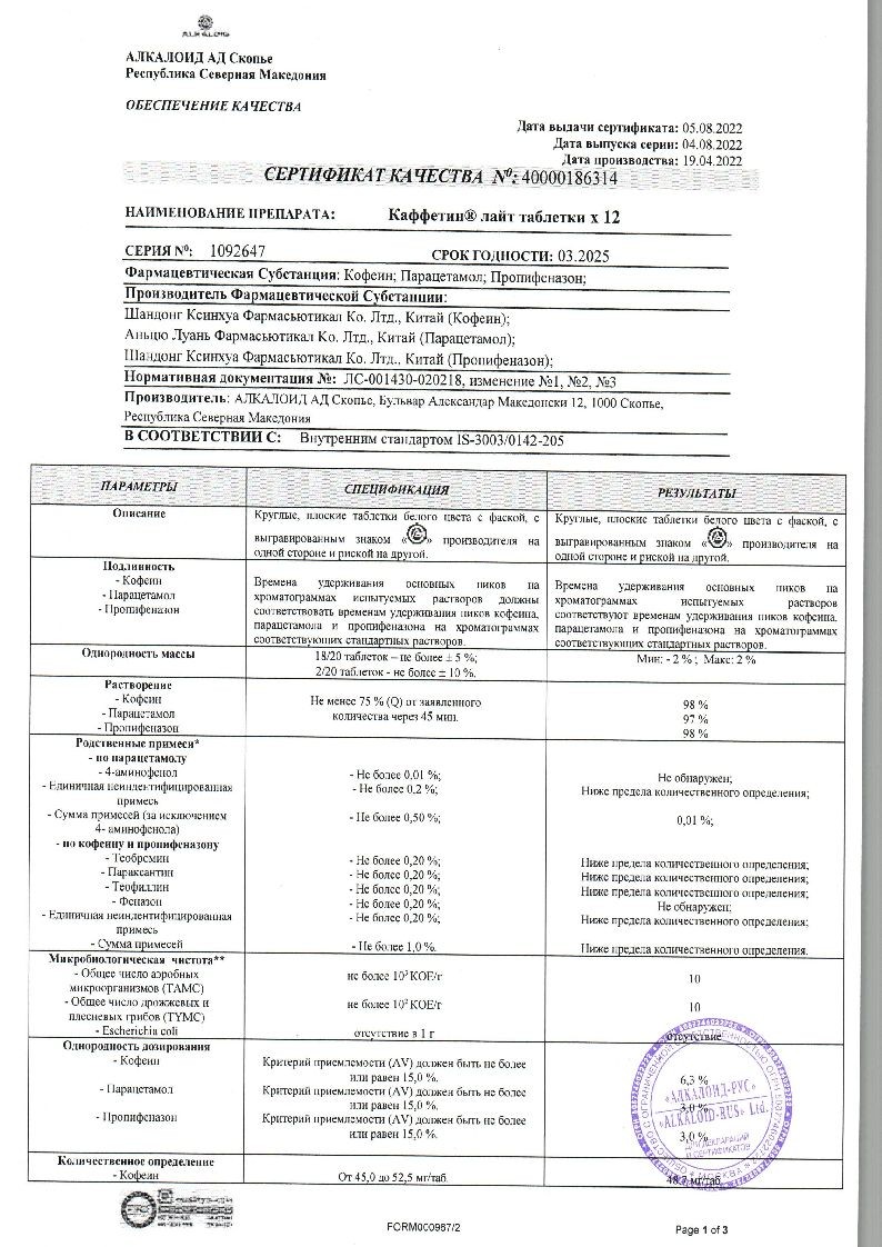 Каффетин Лайт 12 шт таблетки
