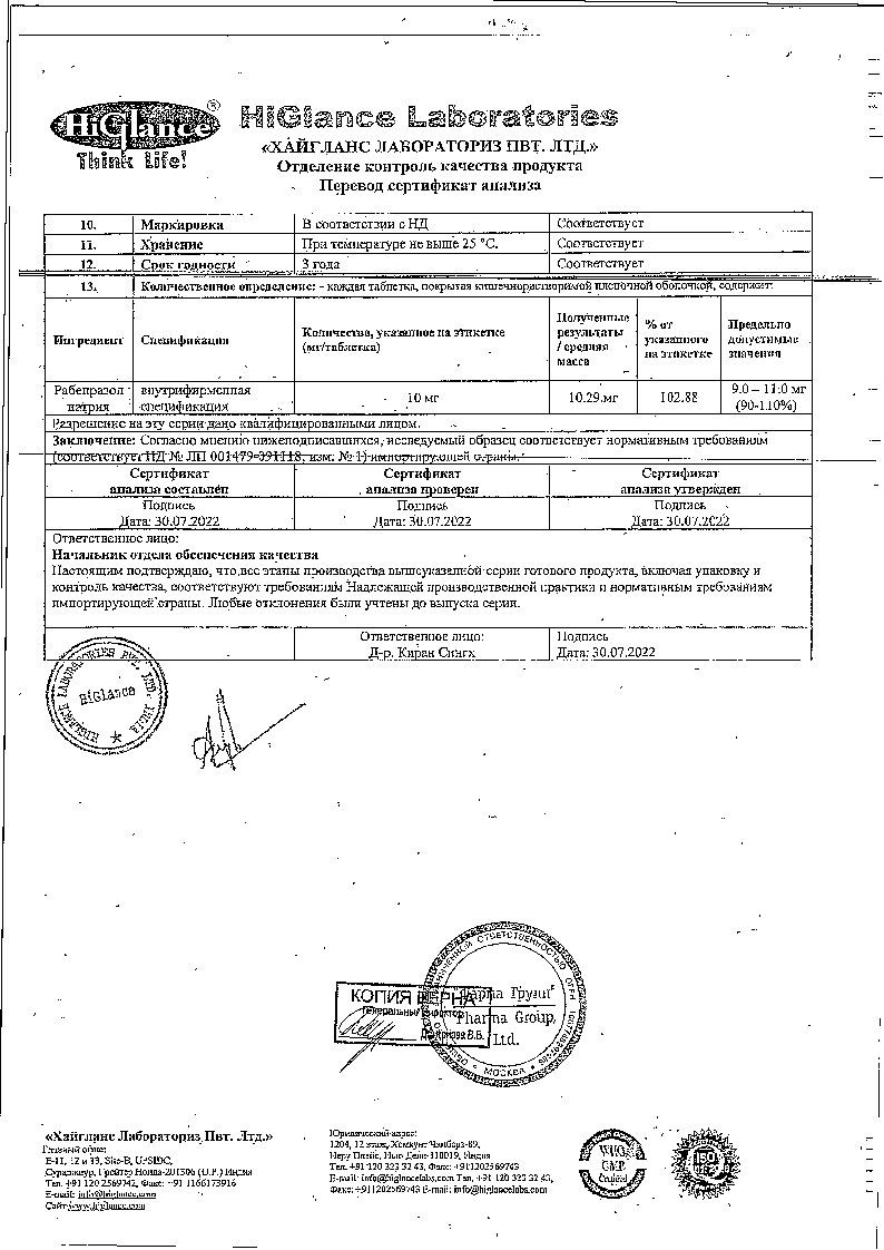 Рабепразол 10 мг 28 шт таблетки кишечнорастворимые покрытые оболочкой