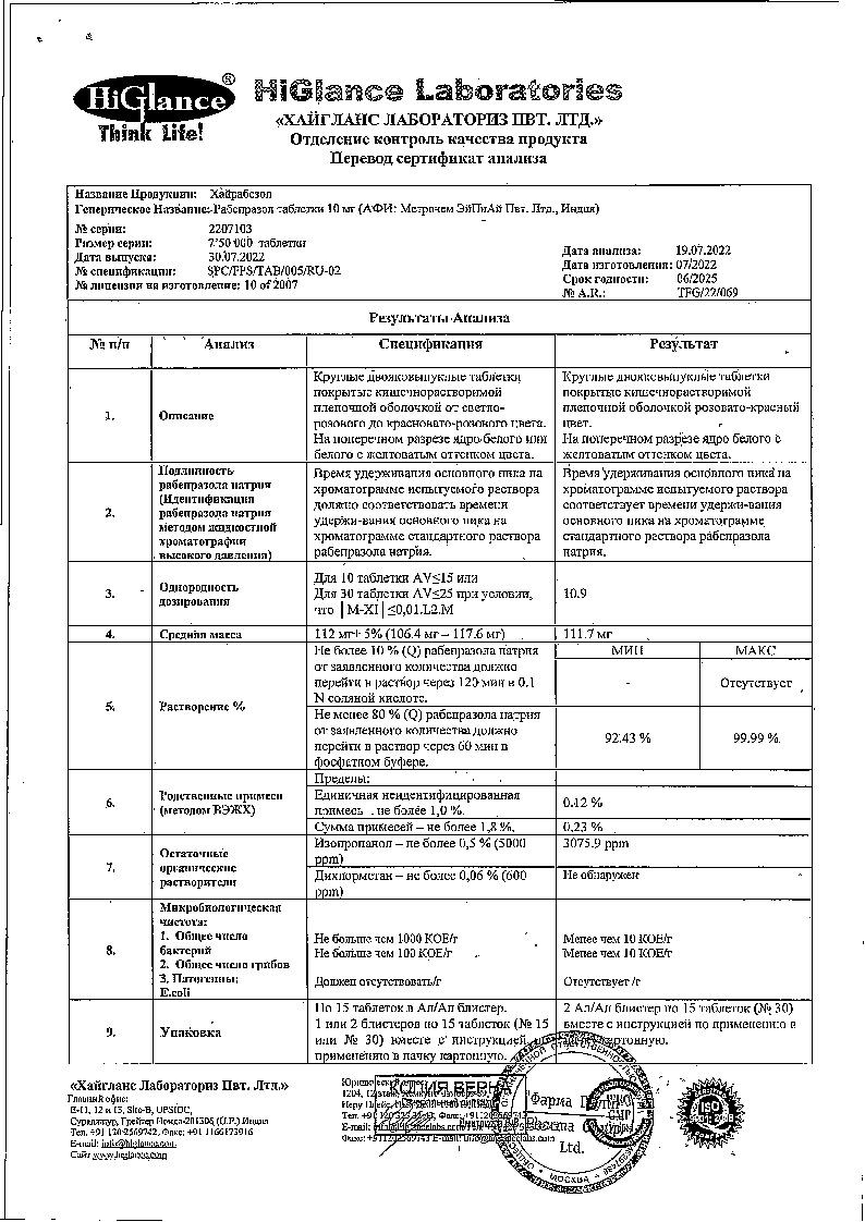 Хайрабезол 10 мг 30 шт таблетки покрытые кишечнорастворимой пленочной оболочкой