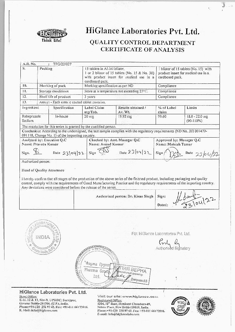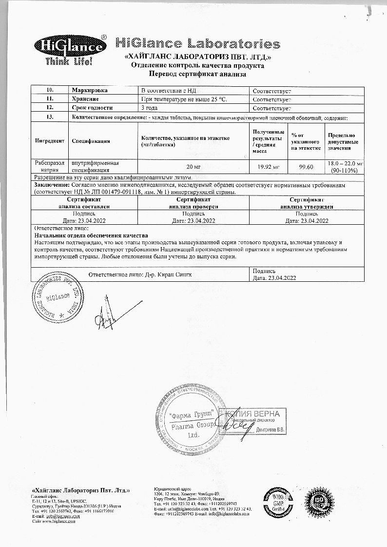 Рабелок 20 мг 1 шт лиофилизат для приготовления раствора для внутривенного введения