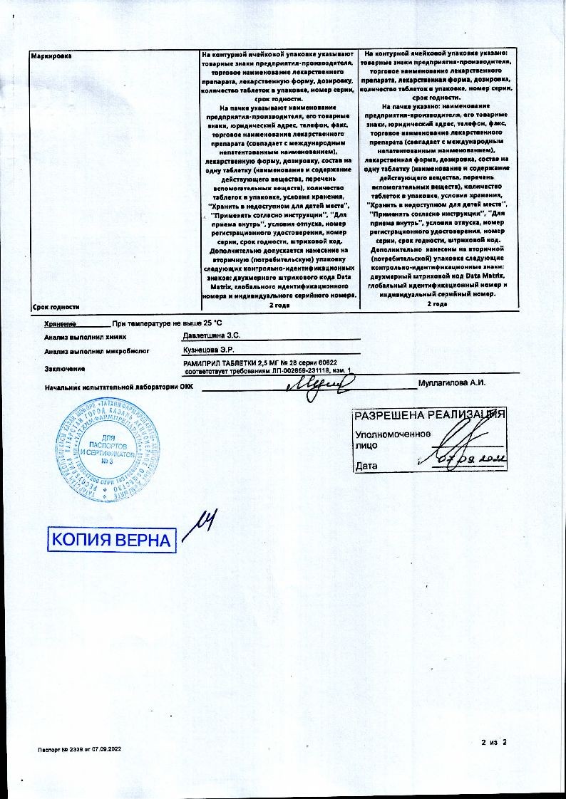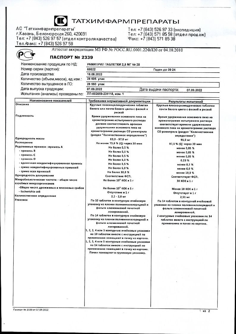 Купить: Рамиприл 2,5 мг 28 шт таблетки