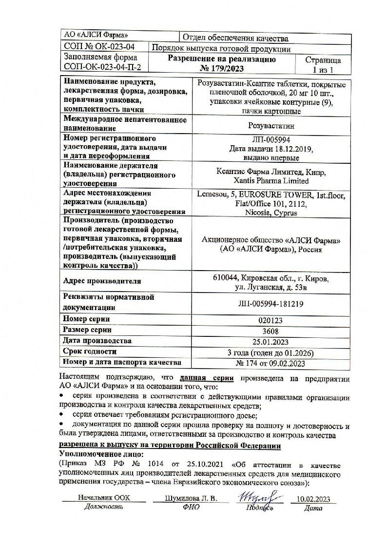 Розувастатин-СЗ 20 мг 30 шт таблетки покрытые пленочной оболочкой