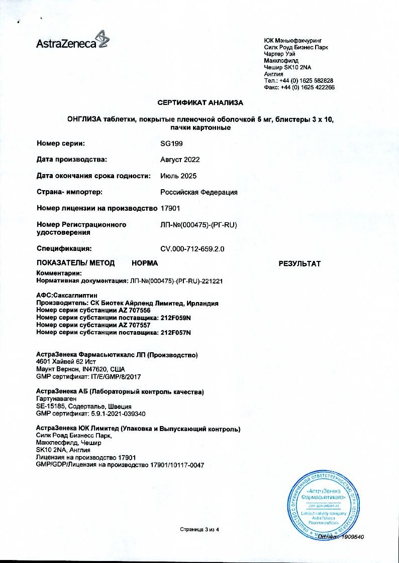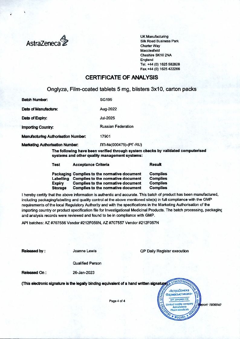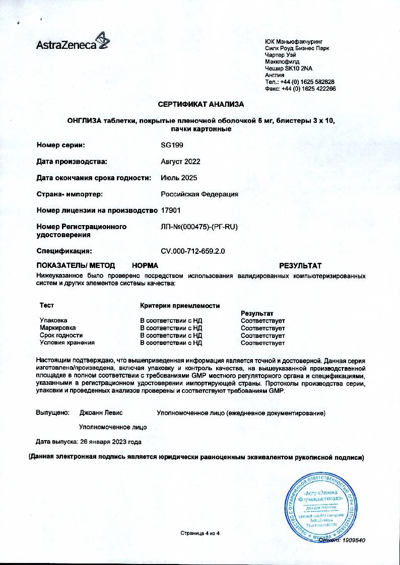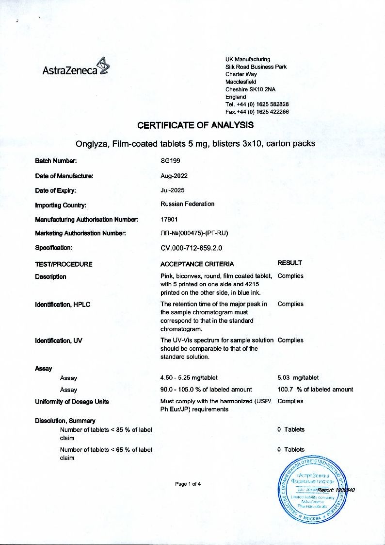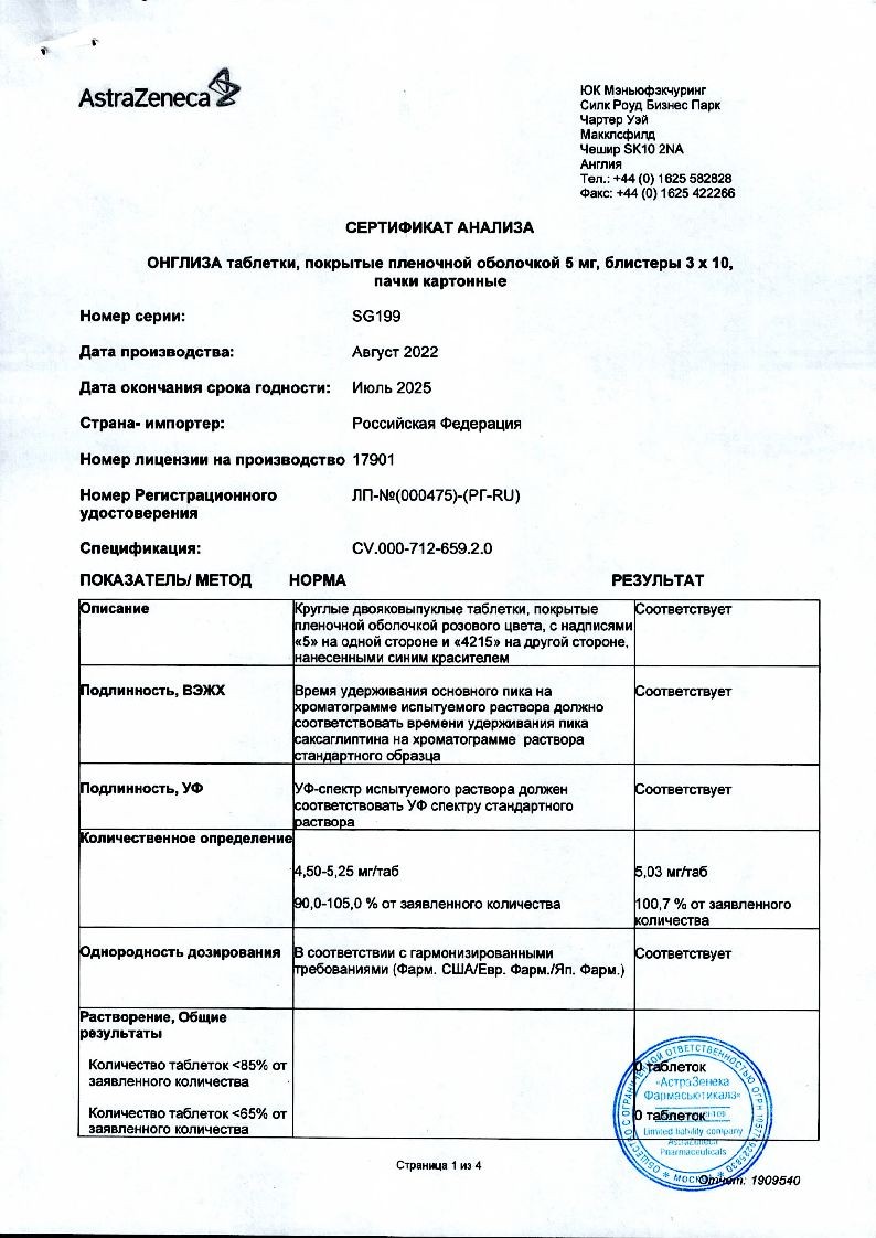 Онглиза 5 мг 30 шт таблетки покрытые пленочной оболочкой