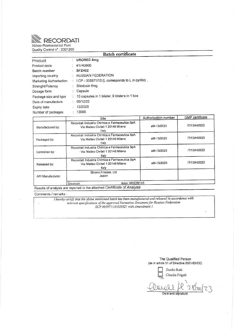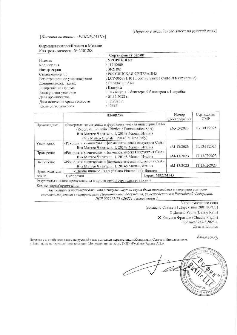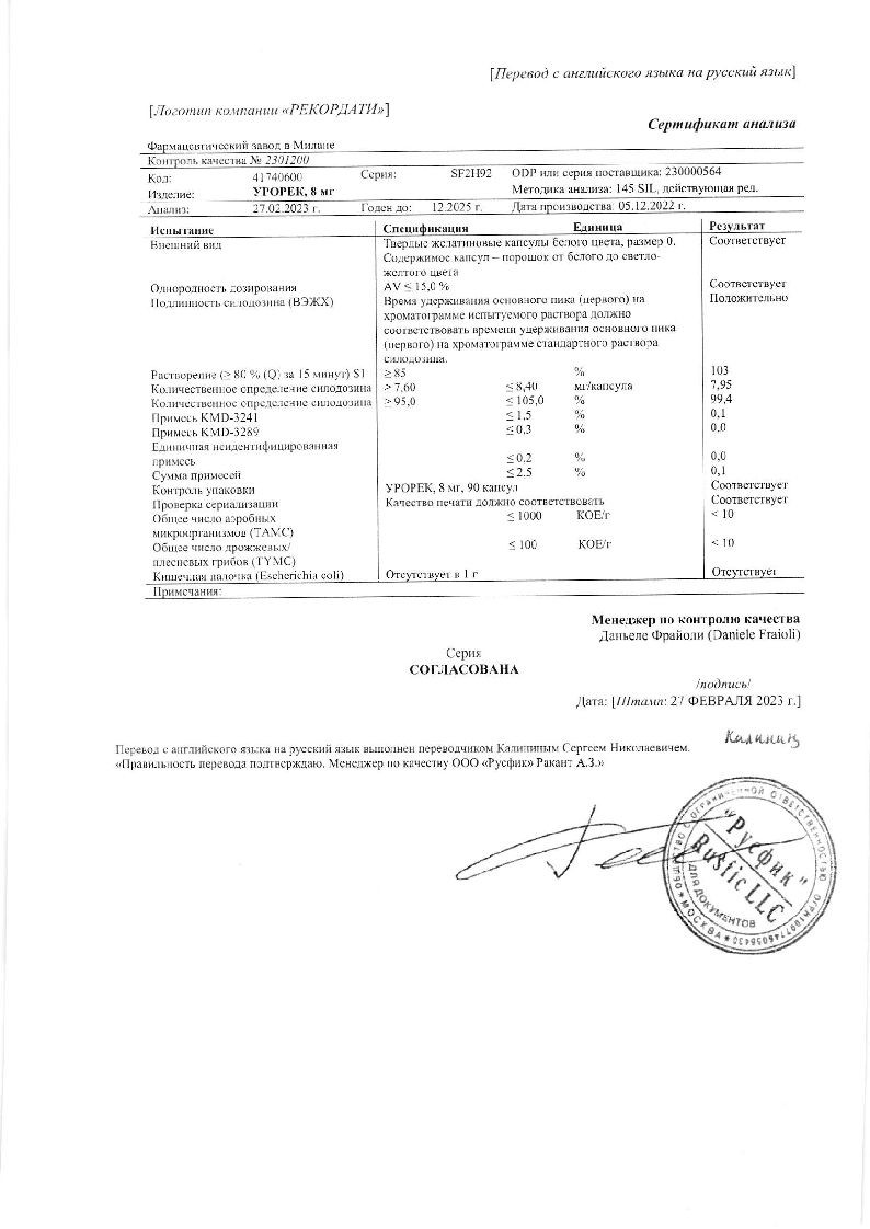 Купить: Урорек 8 мг 90 шт капсулы