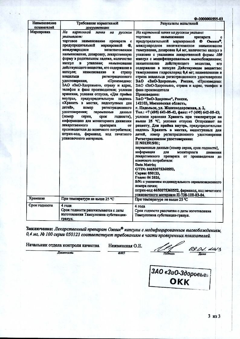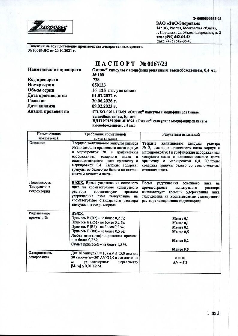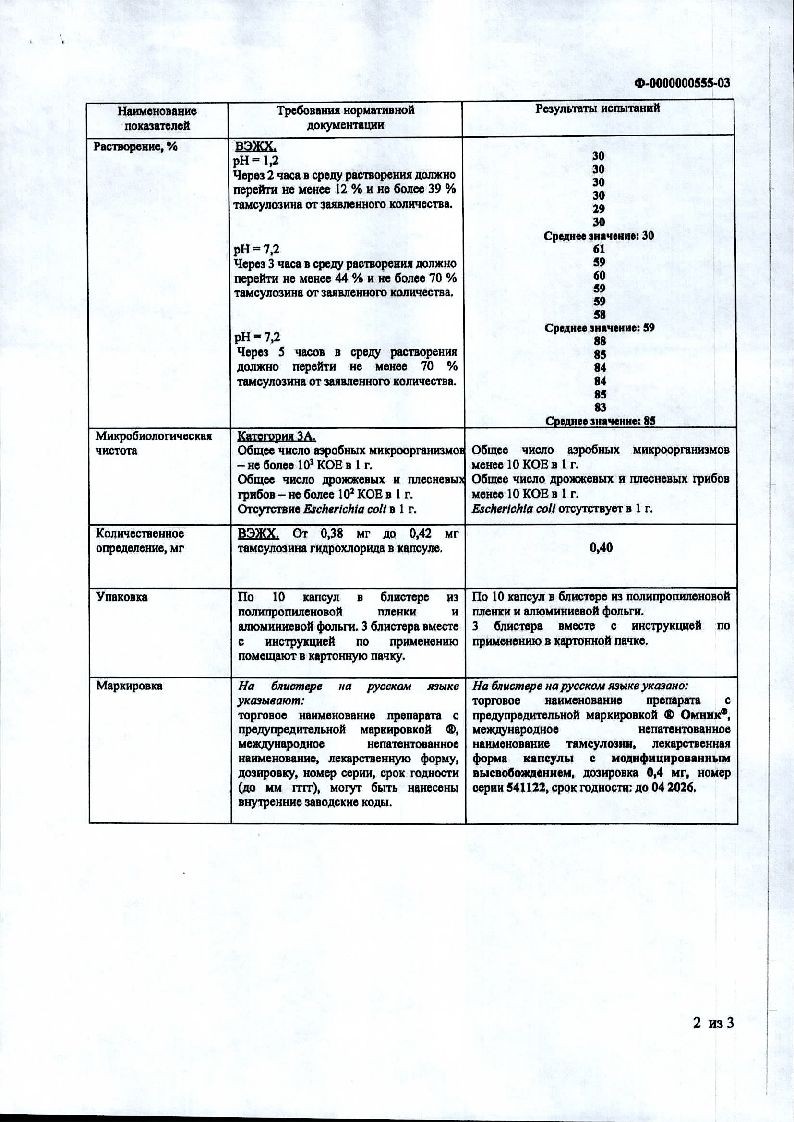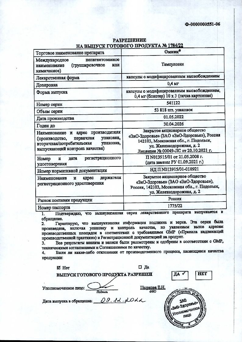 Омник 0,4 мг 30 шт капсулы с модифицированным высвобождением
