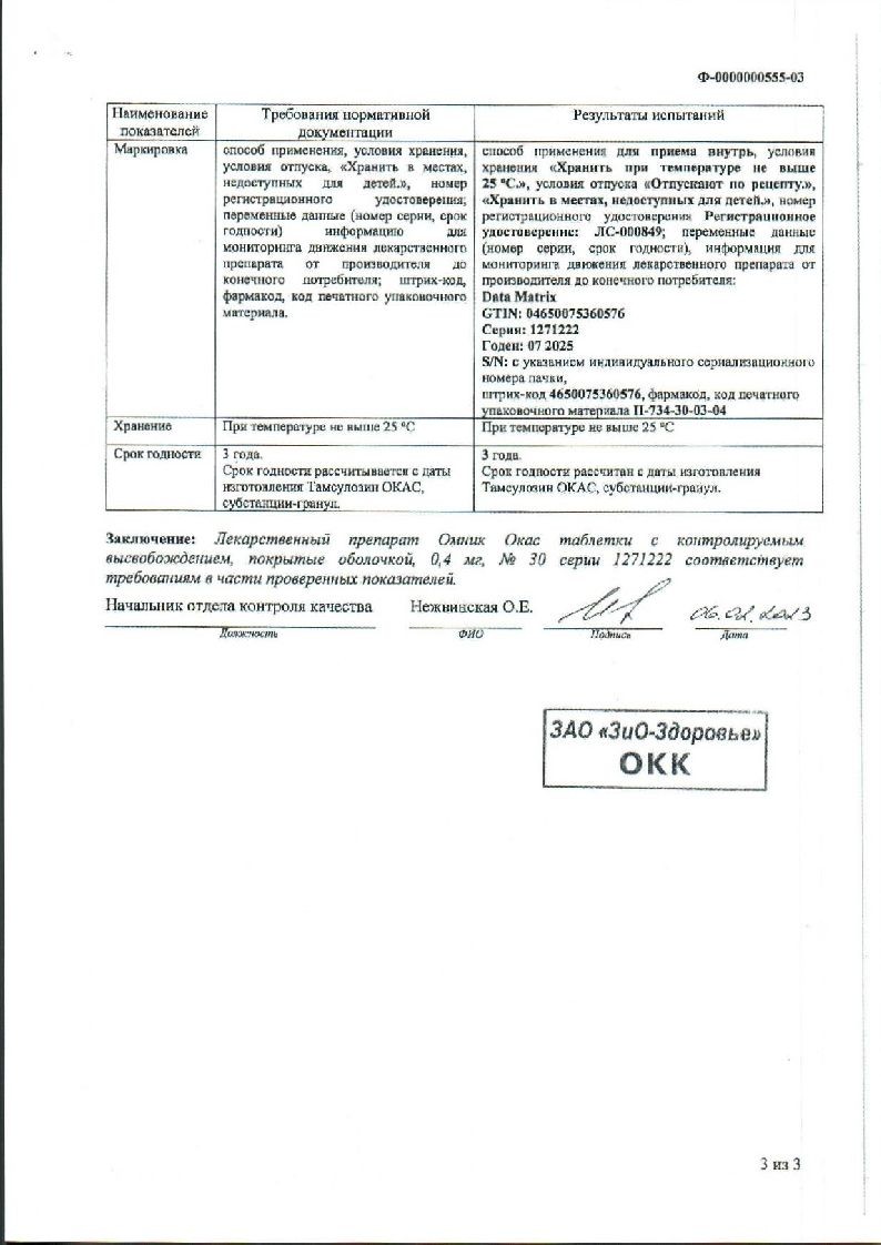 Омник Окас 0,4 мг 10 шт таблетки с контролируемым высвобождением покрытые оболочкой