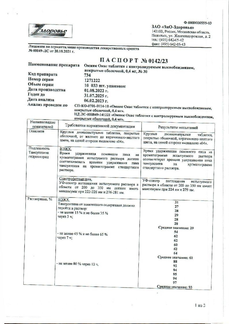 В корзинуОмник Окас 0,4 мг 30 шт таблетки с контролируемым высвобождением покрытые оболочкой