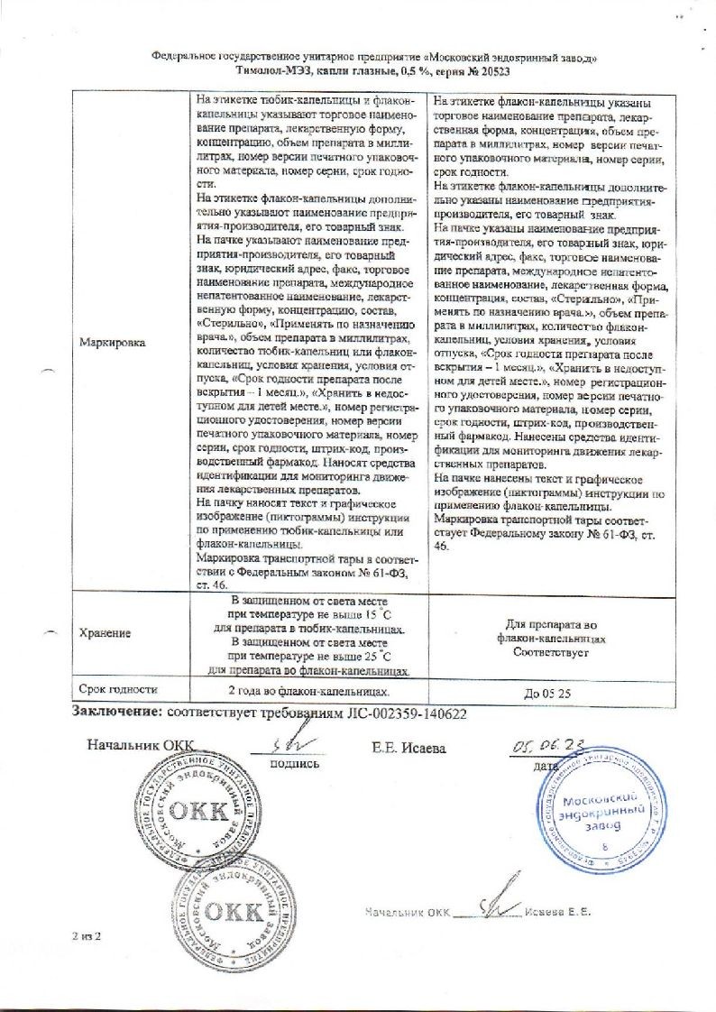 Бимокко-СЗ 0,3 мг/мл + 5 мг/мл фл 2,5 мл 1 шт капли глазные