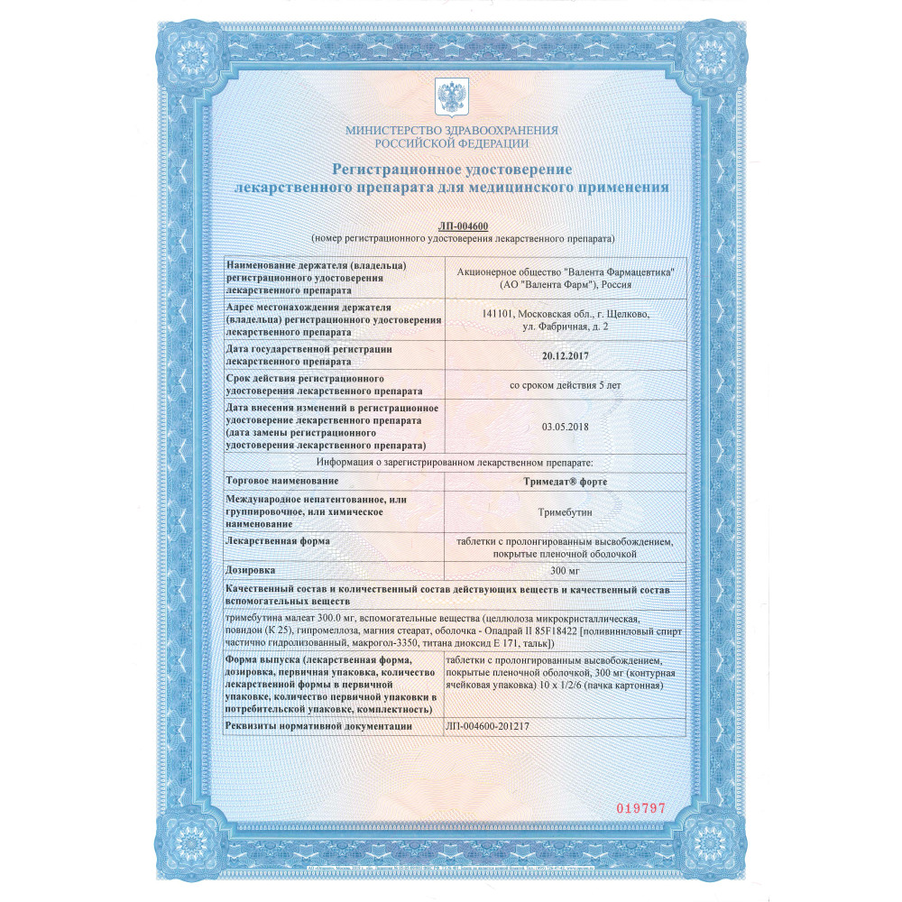 Тримедат форте 300 мг 60 шт таблетки с пролонгированным высвобождением покрытые пленочной оболочкой