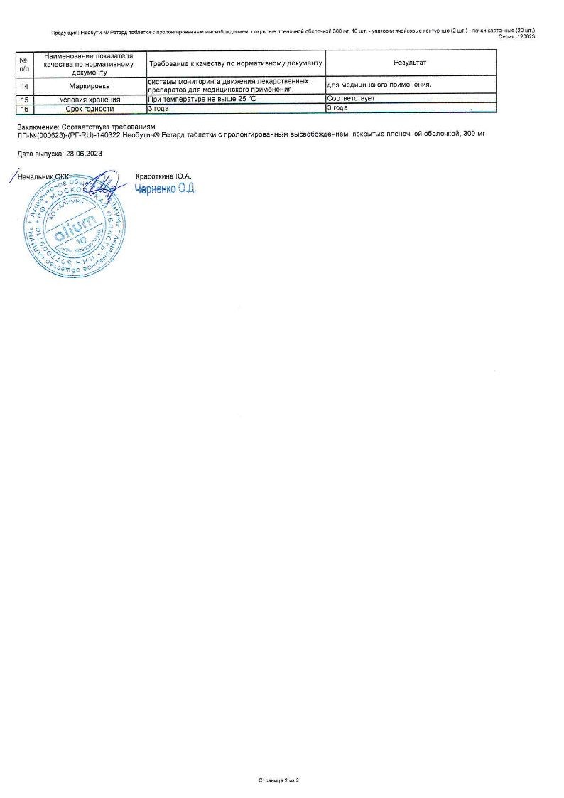 Необутин Ретард 300 мг 60 шт таблетки с пролонгированным высвобождением покрытые пленочной оболочкой
