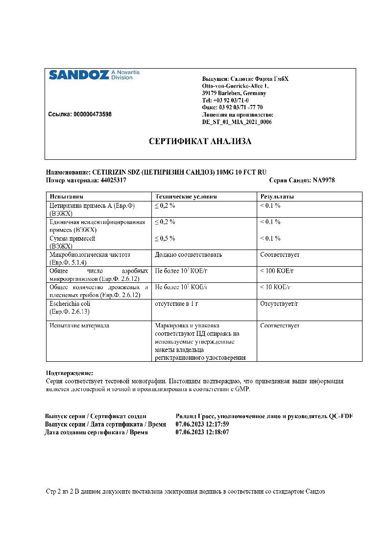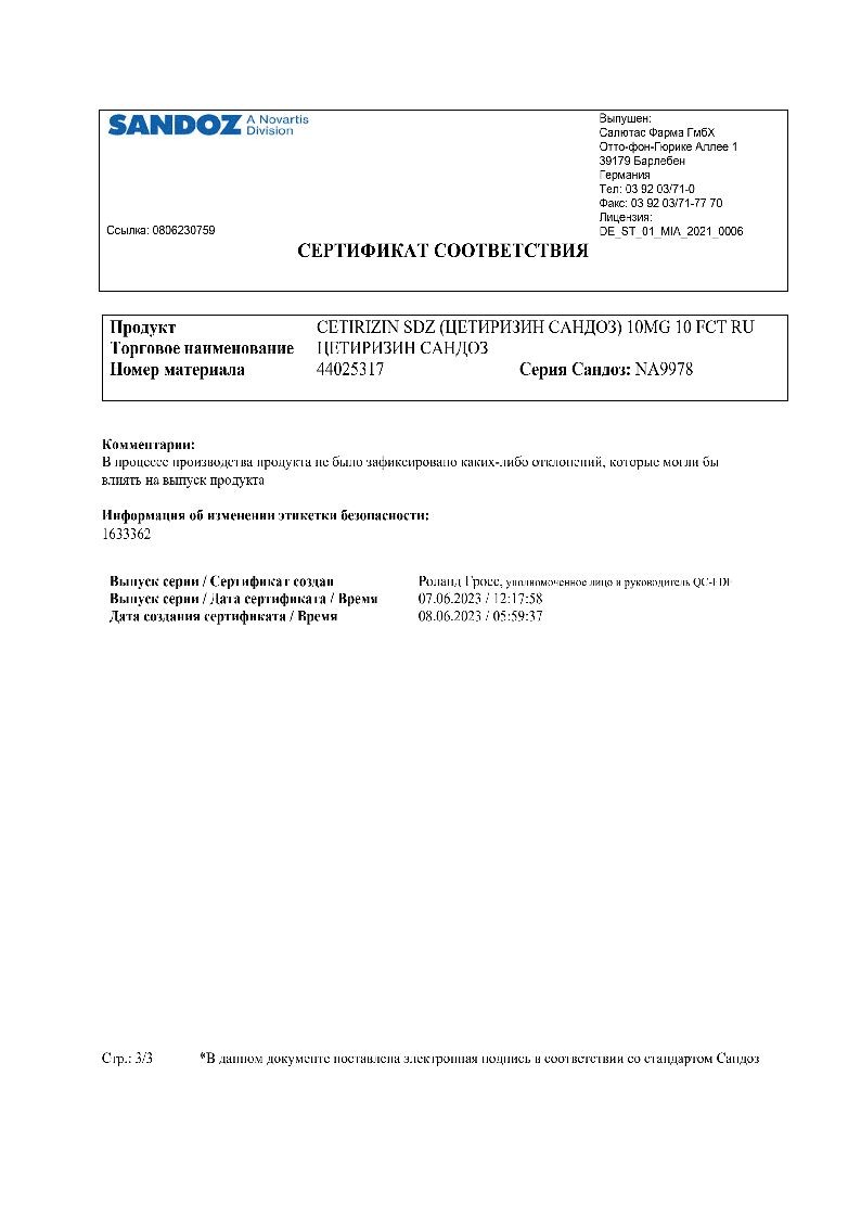 Зодак 10 мг 10 шт таблетки покрытые пленочной оболочкой