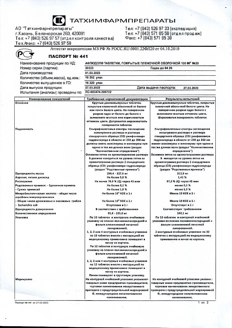 Афлюдол 100 мг 20 шт таблетки покрытые пленочной оболочкой