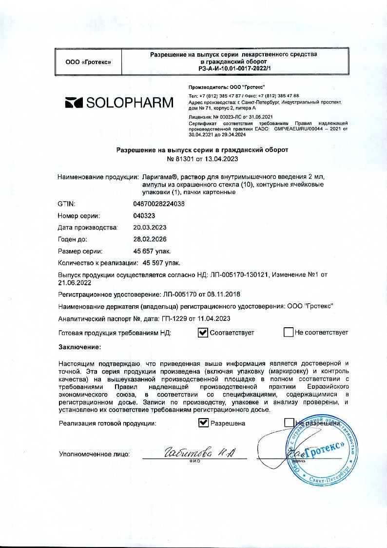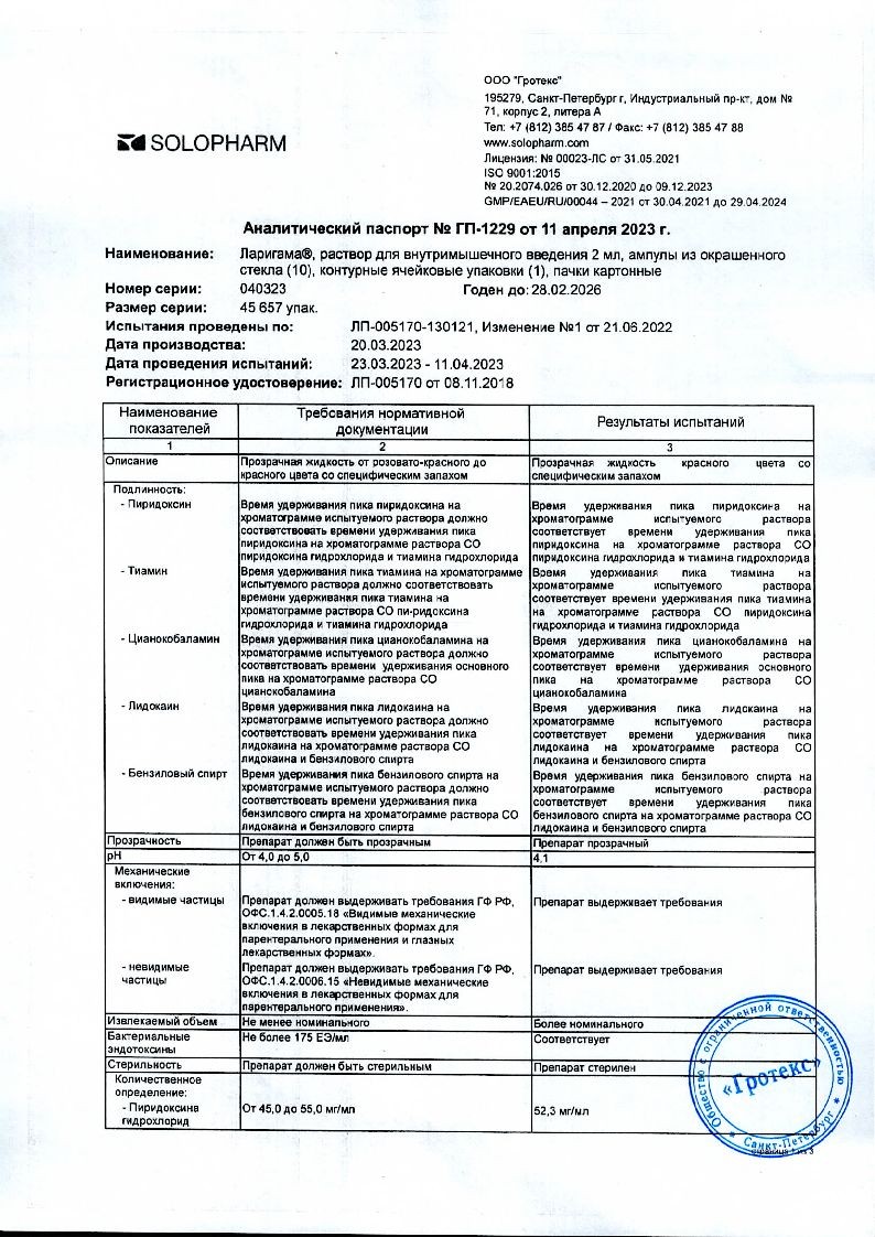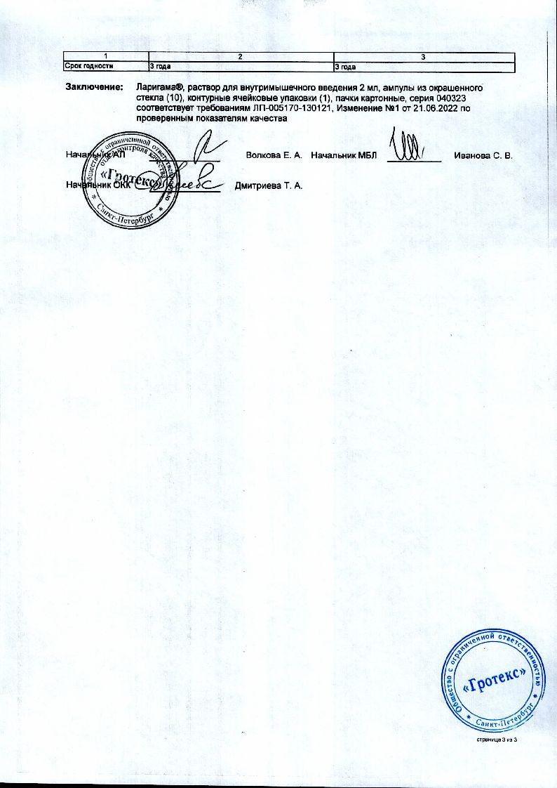 Ларигама 2 мл 10 шт раствор для внутримышечного введения