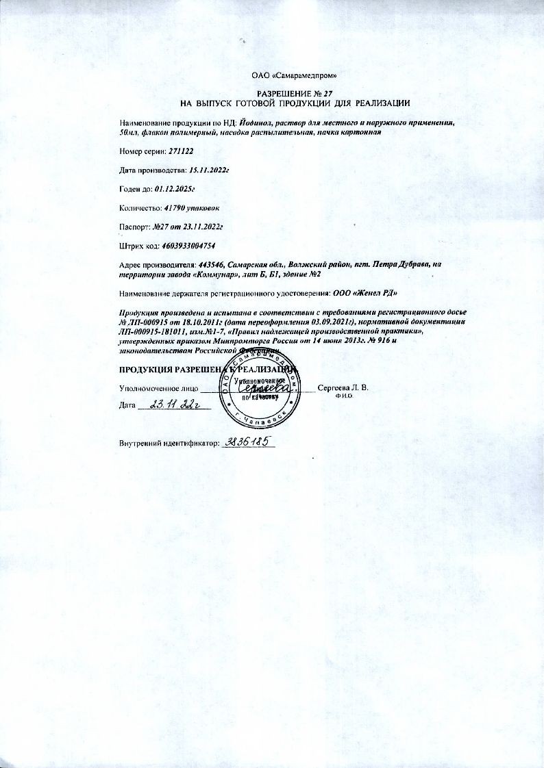 Йодинол 50 мл раствор с насадкой-распылителем