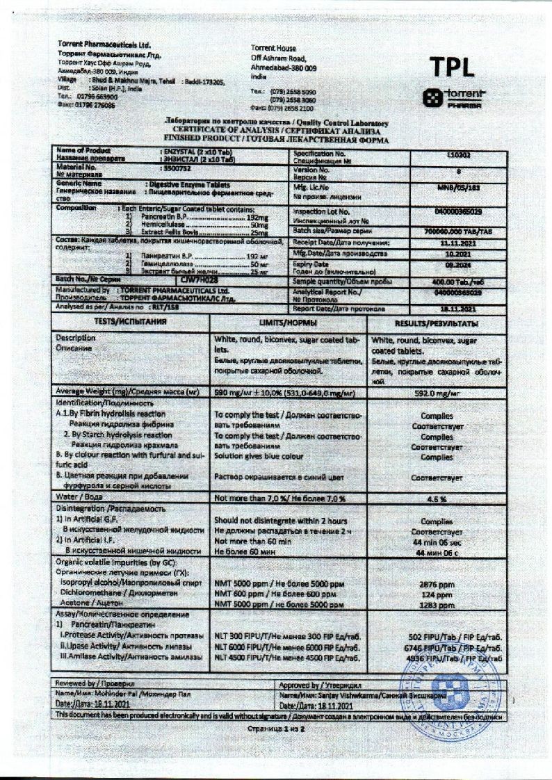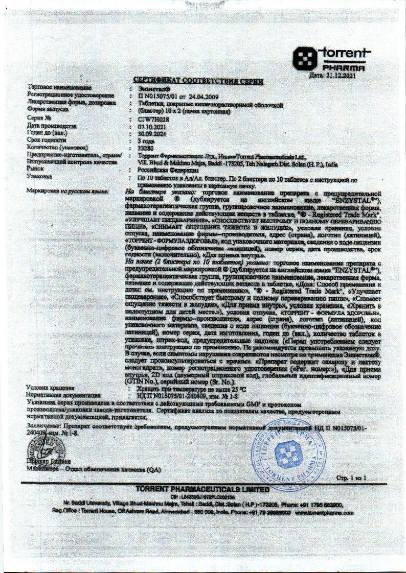 В корзинуЭнзистал 20 шт таблетки покрытые кишечнорастворимой оболочкой