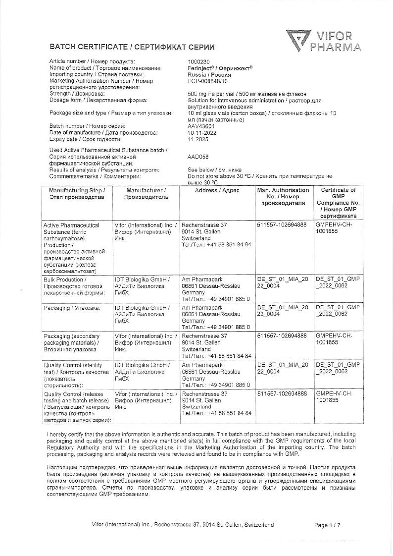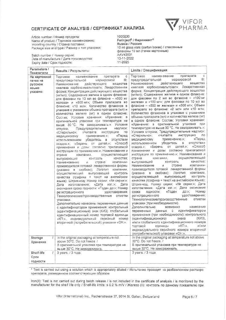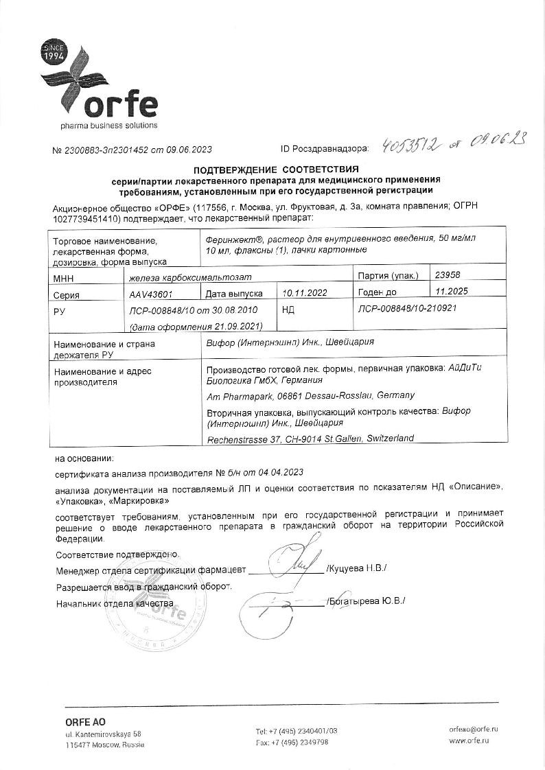 Феринжект 50 мг/мл 10 мл 1 шт раствор для внутривенного введения
