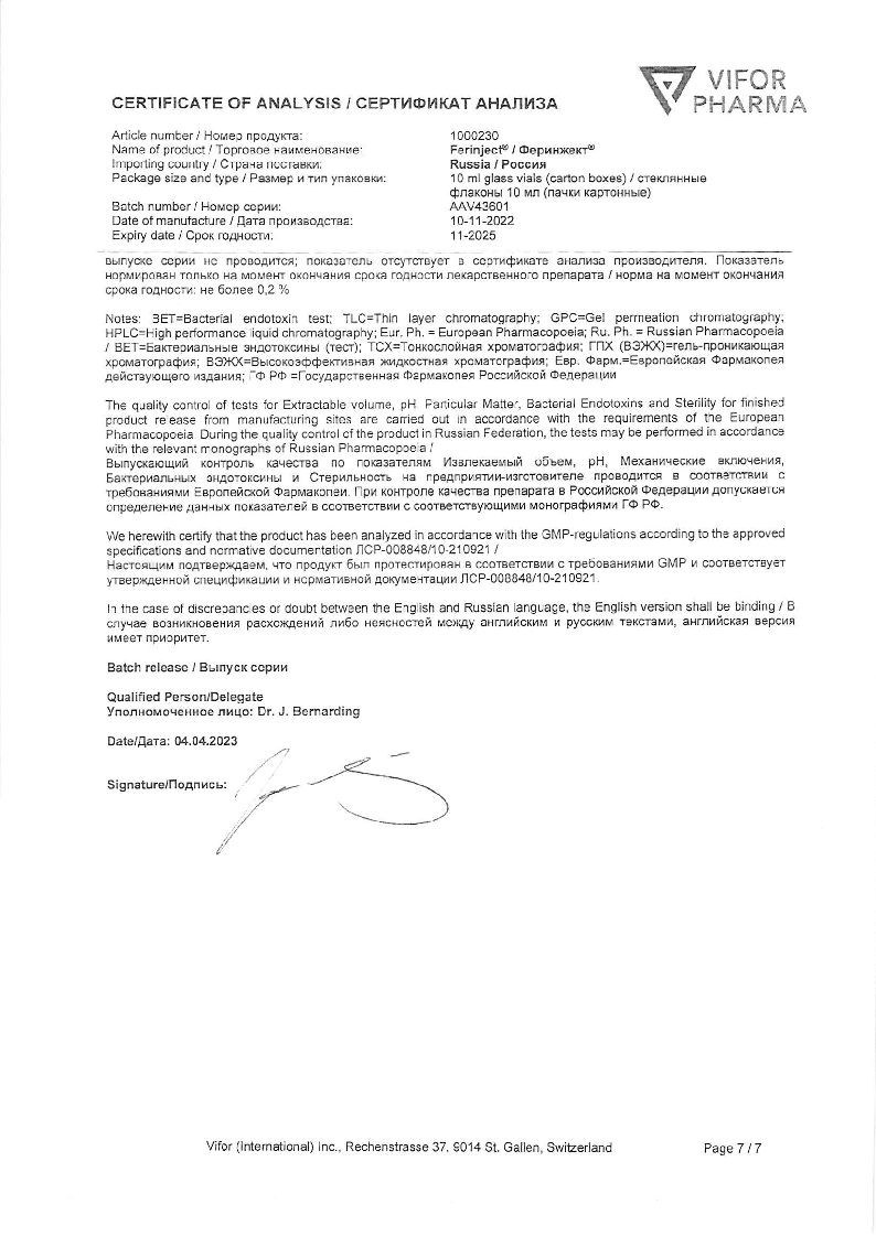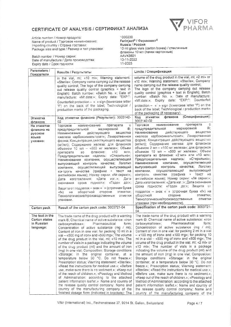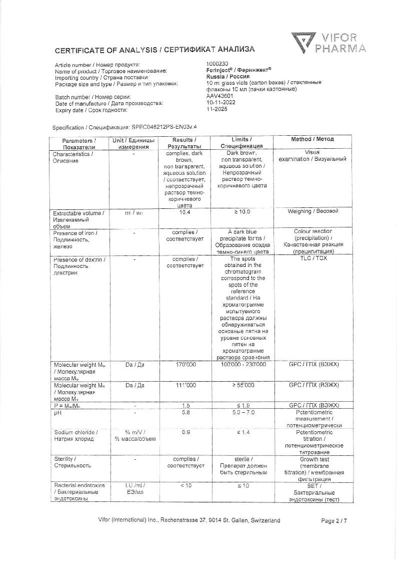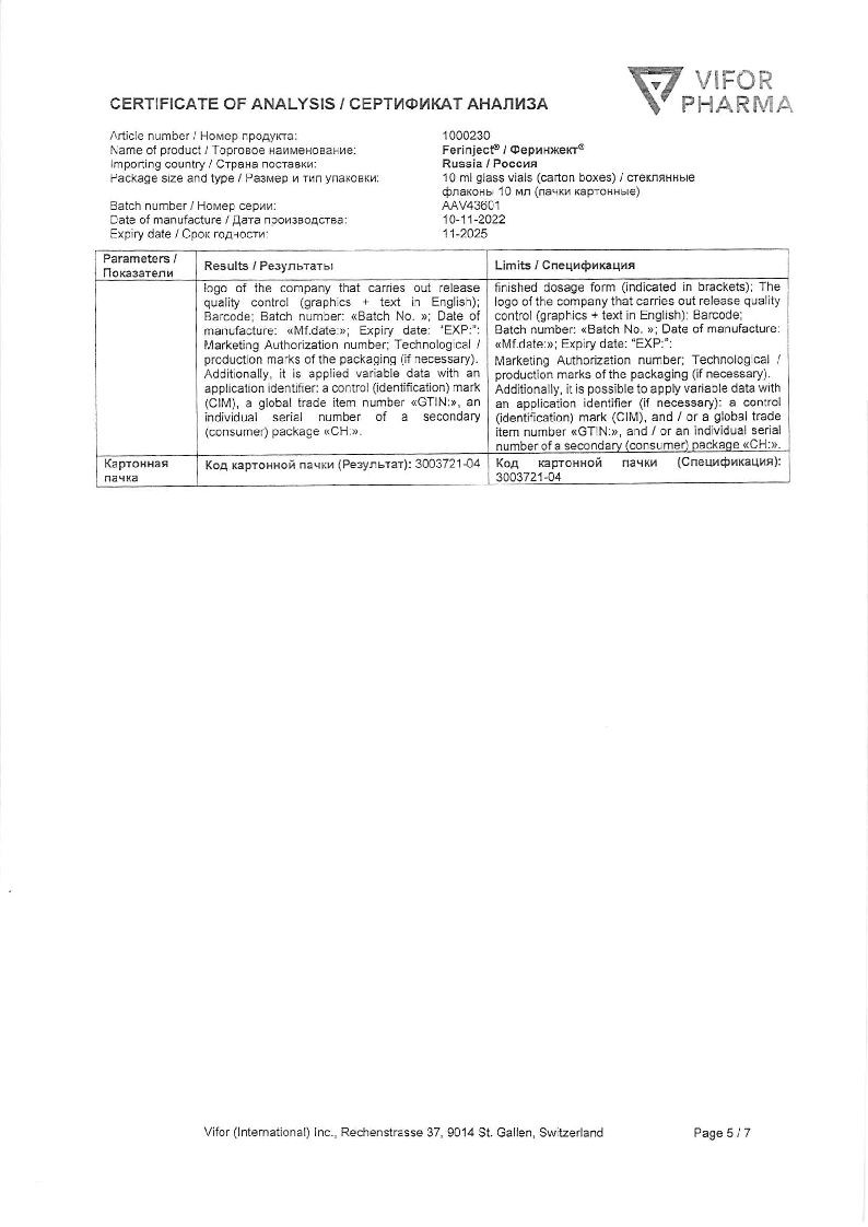 Феринжект 50 мг/мл 10 мл 1 шт раствор для внутривенного введения