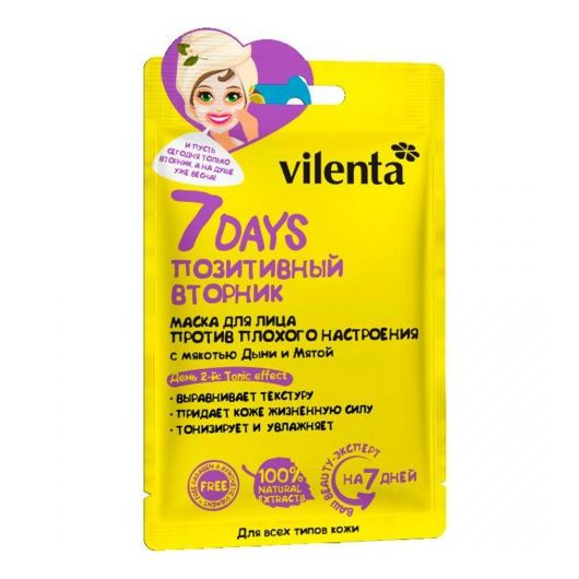 7 Days маска д/лица Арт.ВСД002 28г ПОЗИТИВНЫЙ ВТОРНИК п/плох настроен с мякотью Дыни и Мятой