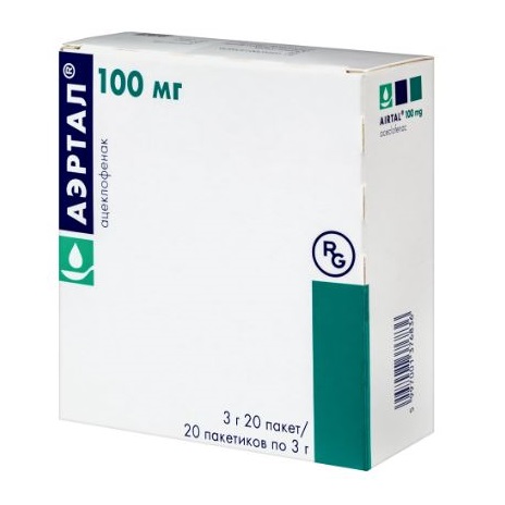 Аэртал® не следует принимать в период грудного вскармливания. Данные о выделении ацеклофенака с женским молоком отсутствуют; при применении радиоактивного 14С-ацеклофенака в доклинических исследованиях заметного переноса радиоактивности в молоко не наблюдалось.