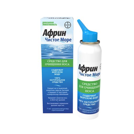 Африн Чистое Море Средство от заложенности носа – 100 % натуральное средство в виде гипертонического раствора разведенной морской воды, содержащее большое количество микроэлементов. Африн Чистое Море Средство от заложенности носа применяют для безопасного, простого и эффективного очищения полости носа от выделений, аллергенов, вирусов и бактерий и уменьшения заложенности носа. Африн Чистое Море Средство от заложенности носа подходит для людей даже с очень чувствительными слизистыми оболочками. Применение Африн Чистое Море Средство от заложенности носа несколько раз в день совершенно безопасно при длительном использовании. Африн Чистое Море Средство от заложенности носа можно применять до 6 раз в день по мере необходимости. Не содержит консервантов и химических добавок.