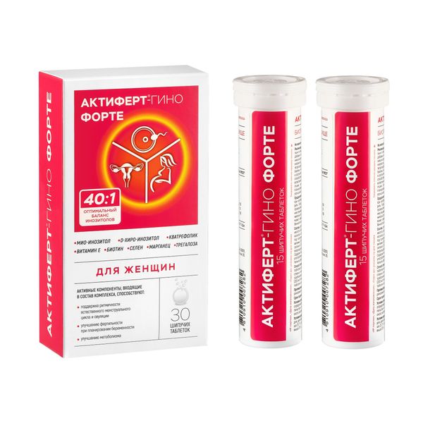 Специализированный витаминно-минеральный комплекс Актиферт-Гино Форте содержит комбинацию Мио-инозитола и D-хиро-инозитола в физиологическом соотношении 40:1, активный метаболит фолиевой кислоты 4-го поколения в виде (6S)-5-метилтетрагидрофолиевой кислоты (Quatrefolic®), витамин Е, биотин, марганец и селен.