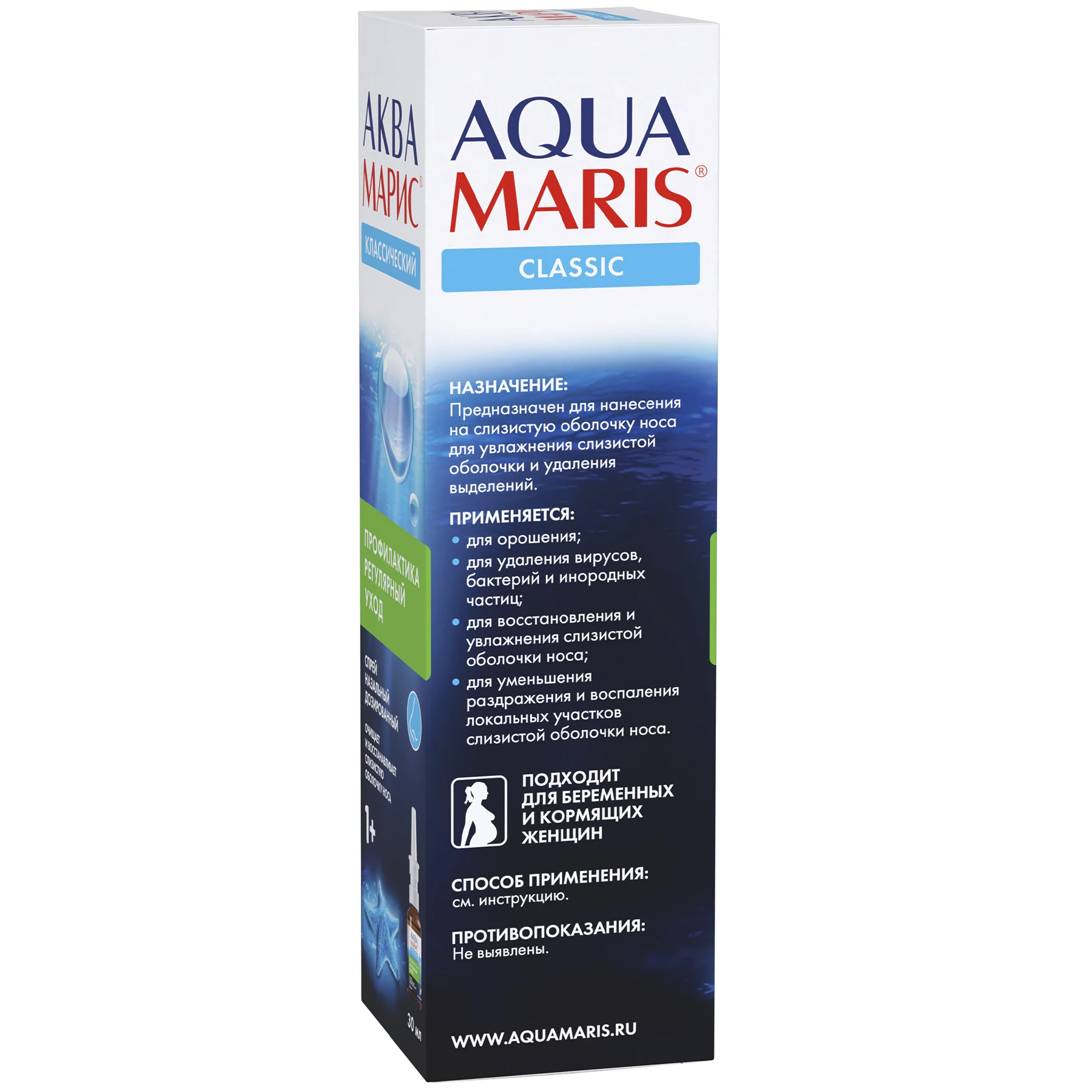 Аква Марис ®, применяемый с гигиеническими целями, способствует очищению слизистой от осевшей на ней уличной и комнатной пыли.