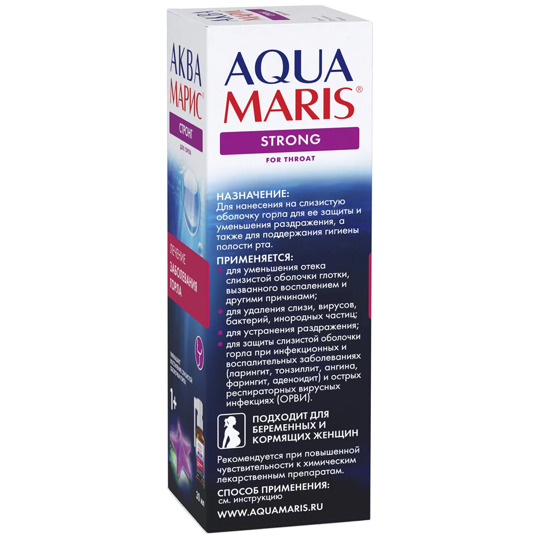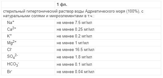 Препарат на основе гипертонического стерильного раствора морской воды. Применяется с лечебной, профилактической и гигиенической целью для очищения, снятия раздражения и защиты слизистой оболочки глотки и гортани.
