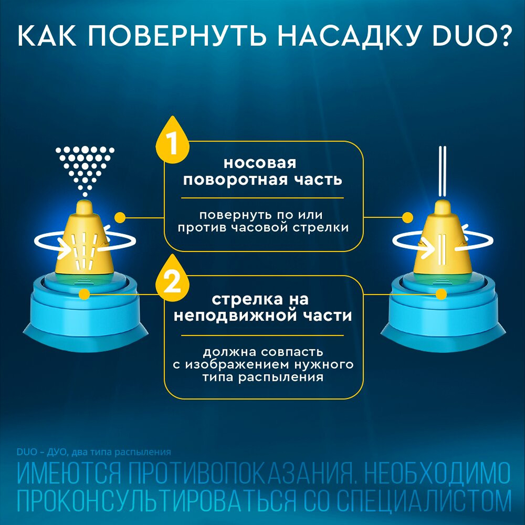 В случае использования средства с поворотной насадкой выберите требуемый тип распыления «душ» или «струя» согласно рекомендациям врача или в зависимости от степени выраженности симптомов, характера выделений и индивидуальных предпочтений.