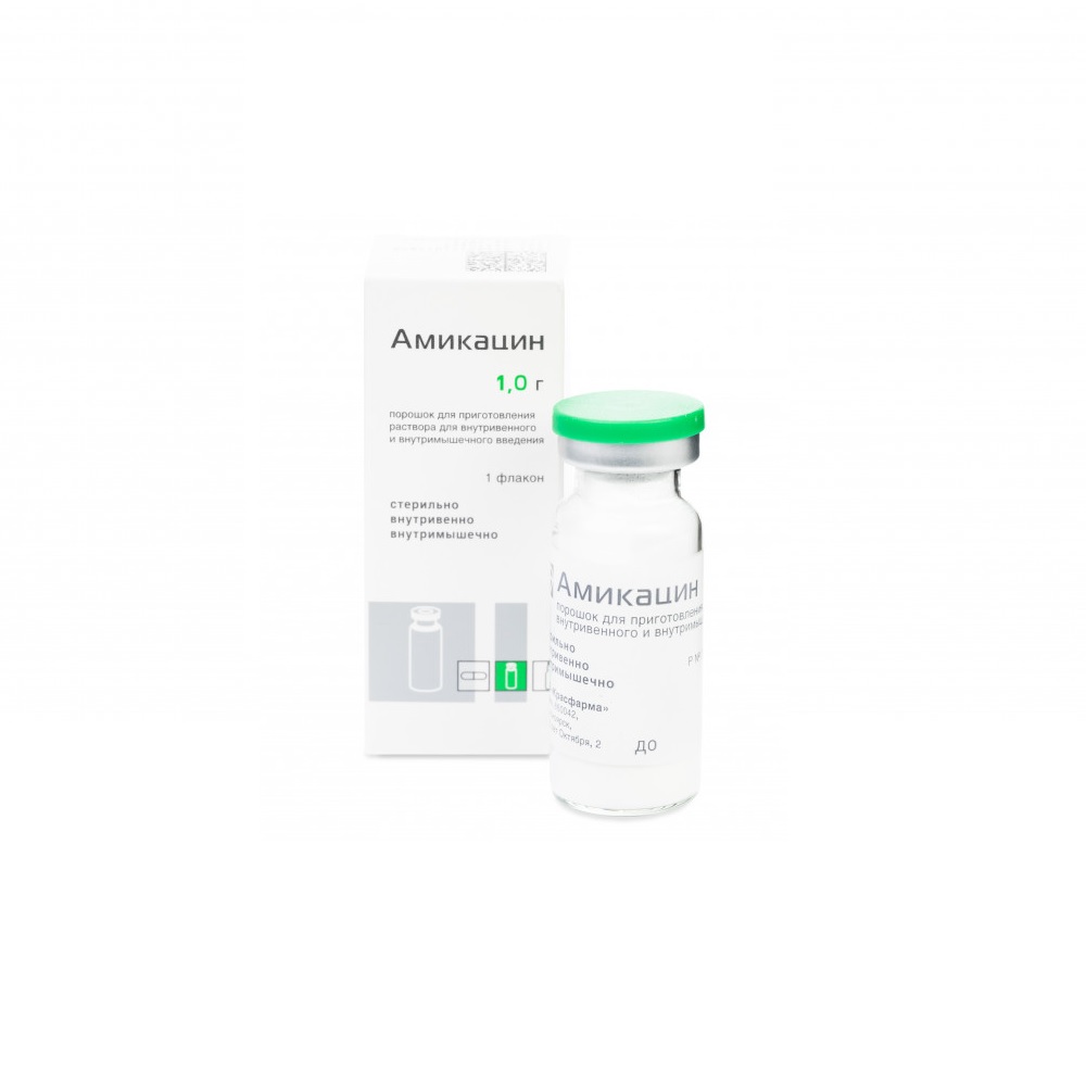 Амикацин 1000 мг 1 шт флакон порошок для приготовления раствора для внутривенного и внутримышечного введения