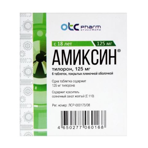 Низкомолекулярный синтетический индуктор интерферона, стимулирующий образование в организме интерферонов альфа, бета, гамма. Основными структурами, продуцирующими интерферон в ответ на введение тилорона, являются клетки эпителия кишечника, гепатоциты, Т-лимфоциты, нейтрофилы и гранулоциты. После приема препарата внутрь максимум продукции интерферона определяется в последовательности кишечник-печень-кровь через 4-24 ч. Амиксин® обладает иммуномодулирующим и противовирусным эффектом.