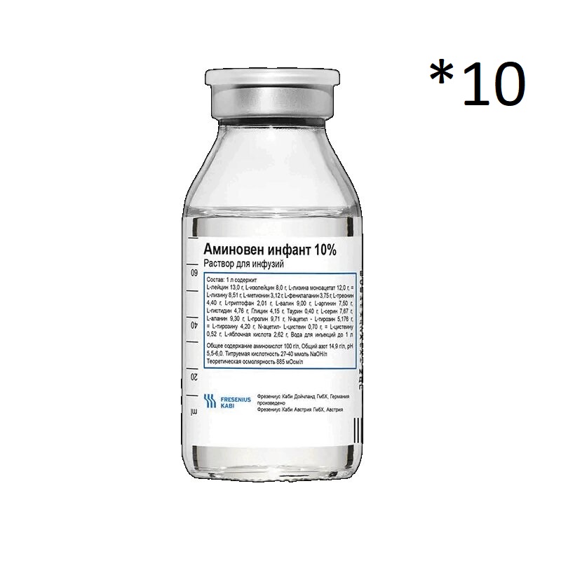 Только небольшая часть введенных путем инфузии аминокислот выводится через почки, это зависит от зрелости почек пациента и общего течения заболевания.