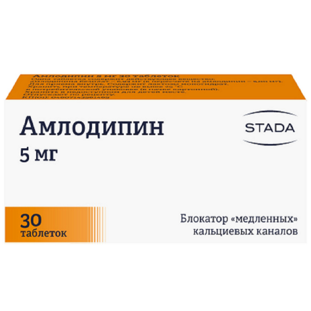 Действующее вещество: амлодипин - 5,000 мг или 10,000 мг (в виде амлодипина безилата - 6,934 мг или 13,869 мг);