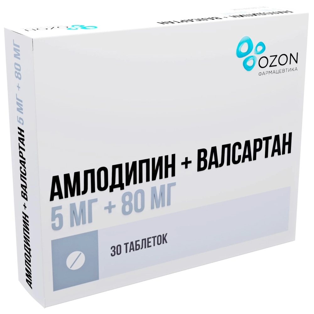 Амлодипин + Валсартан 5 мг + 80 мг 30 шт таблетки покрытые пленочной оболочкой
