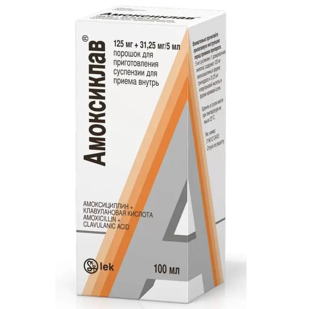 Действующие вещества: амоксициллина тригидрат (эквивалентно амоксициллину) —143,51 мг (125,00 мг); клавуланат калия (эквивалентно клавулановой кислоте) — 37,24 мг (31 ,25 мг).