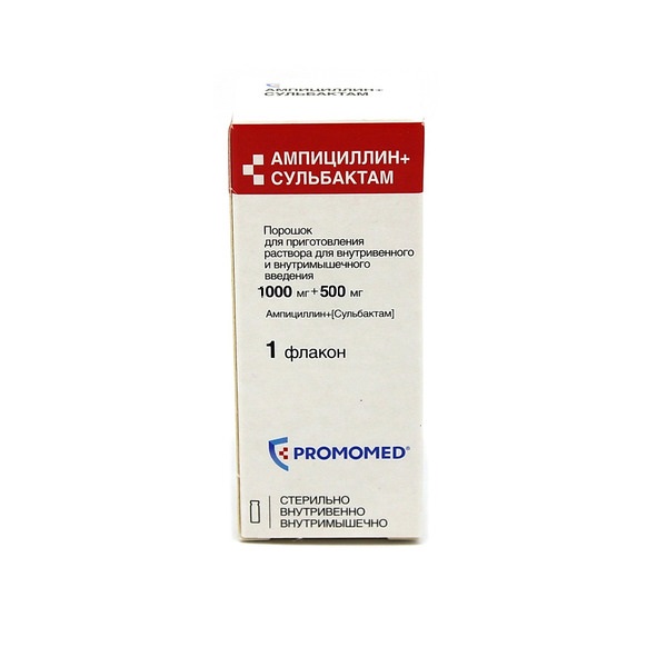 Ампициллин+Сульбактам - комбинированный препарат, обладает бактерицидным действием в отношении чувствительных к ампициллину микроорганизмов, включая штаммы, продуцирующие бета-лактамазы. Ампициллин является полусинтетическим пенициллином с широким спектром активности, угнетает синтез белков клеточной стенки патогенных микроорганизмов.