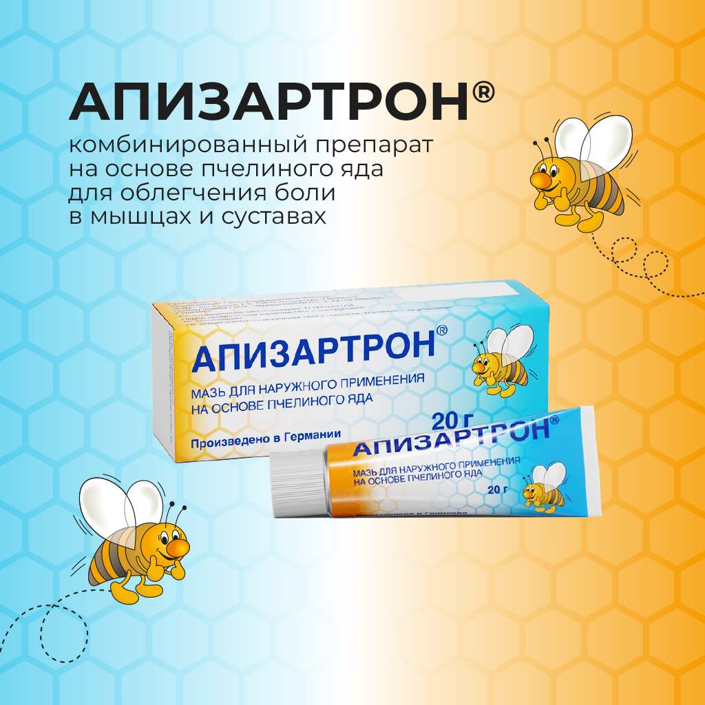 Комбинированное лекарственное средство на основе пчелиного яда для наружного применения.