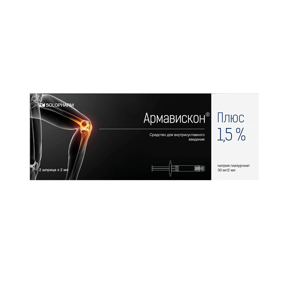 Средство Армавискон Плюс является протезом синовиальной жидкости сустава в преднаполненных шприцах. Применяется на фоне дегенеративных изменений поверхности синовиального хряща для улучшения подвижности суставов, уменьшения болевого синдрома, снижения воспалительных реакций и восстановления гомеостаза в хряще.