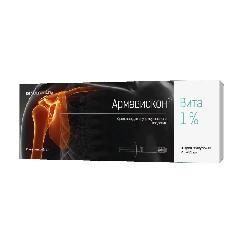 Средство Армавискон является протезом синовиальной жидкости сустава в преднаполненных шприцах. Применяется на фоне дегенеративных изменений поверхности синовиального хряща для улучшения подвижности суставов, уменьшения болевого синдрома, снижения воспалительных реакций и восстановления гомеостаза в хряще.