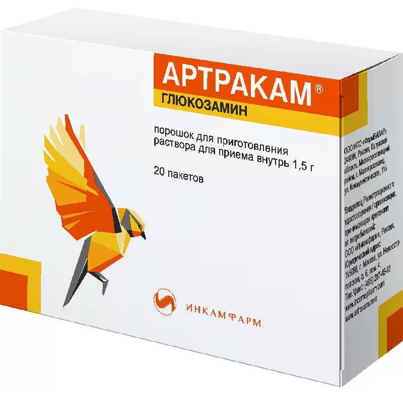 активное вещество: глюкозамина сульфат натрия хлорид в пересчете на 100% вещество 1,884 г., в том числе глюкозамина сульфата - 1,5 г.