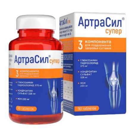 Глюкозамин с хондроитином и МСМ в составе АртраСил Супер стимулируют процессы восстановления после травм и повреждений, а также препятствуют разрушению костной и хрящевой ткани, способствуют уменьшению болезненных ощущений.